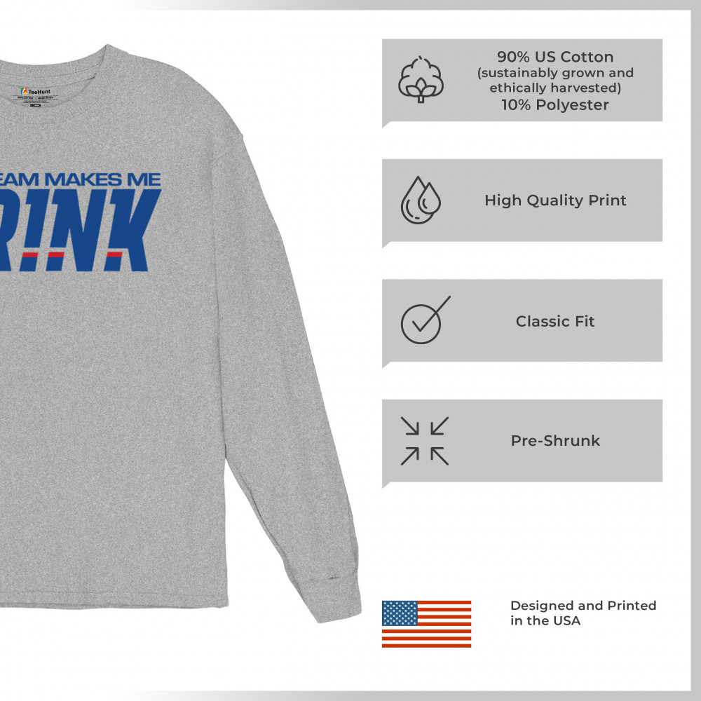 Show off your Buffalo pride with this hilarious “This Team Makes Me Drink†design. Perfect for tailgate parties, playoff season, or game night laughs, it celebrates blue, red, and white team spirit while capturing the loyal but frustrated fan experience. With gameday drinking humor, sports lover energy, and championship vibes, it’s a must-have for every Buffalo fan who loves football and laughter.
