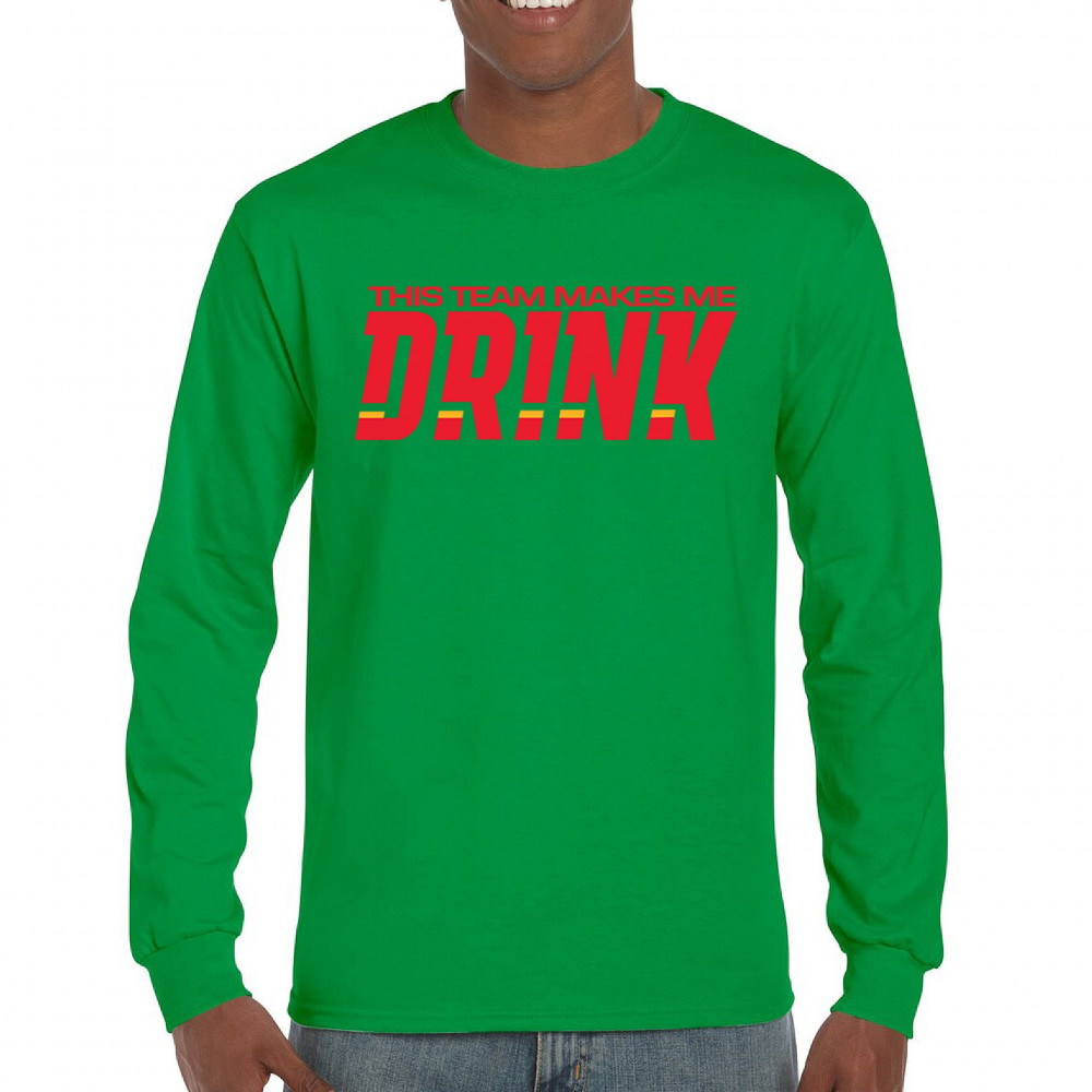 Add playoff energy to your Kansas football collection with this “This Team Makes Me Drink†design. Great for Fantasy Football rivalries, Game Day traditions, and tailgate party celebrations, it honors KC sports culture, football season pride, big game intensity, and the champions’ spirit. Built for Kansas fans who live the City of Fountains lifestyle and cheer on every KC playoff run.