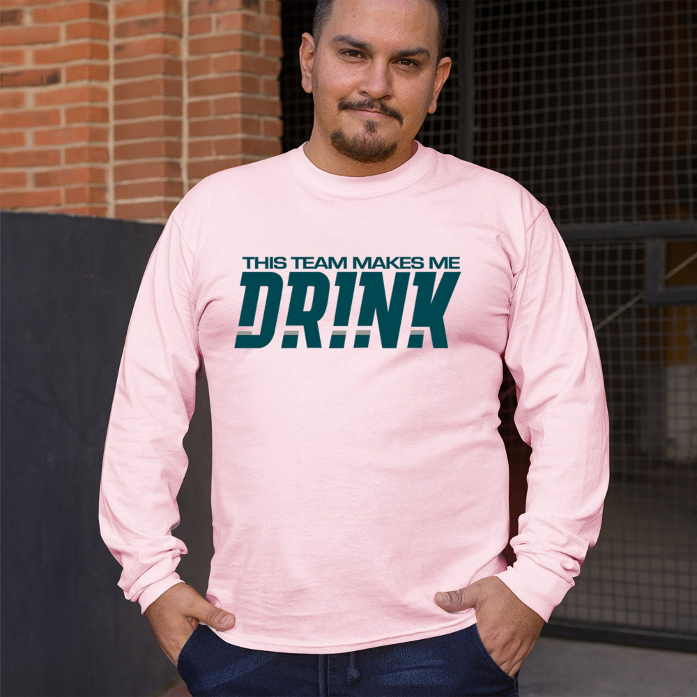 Celebrate the rollercoaster ride of Philly fandom with this “This Team Makes Me Drink†design. Perfect for tailgate parties, game day laughs, and playoff energy, it captures brotherly love, Philadelphia pride, and the wild ups and downs of cheering for The Birds. Whether you’re a championship fan or just love football humor, this alcohol football shirt is your go-to for bar nights and sports culture style.