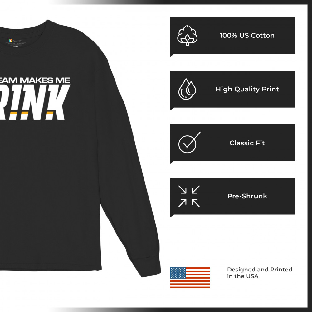 THIS TEAM MAKES ME DRINK long sleeve t-shirt pittsburgh football fan tailgate black