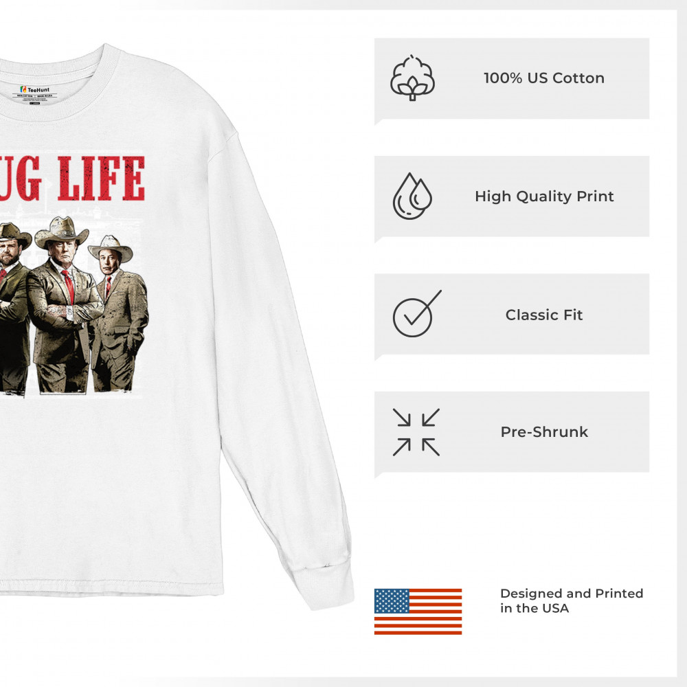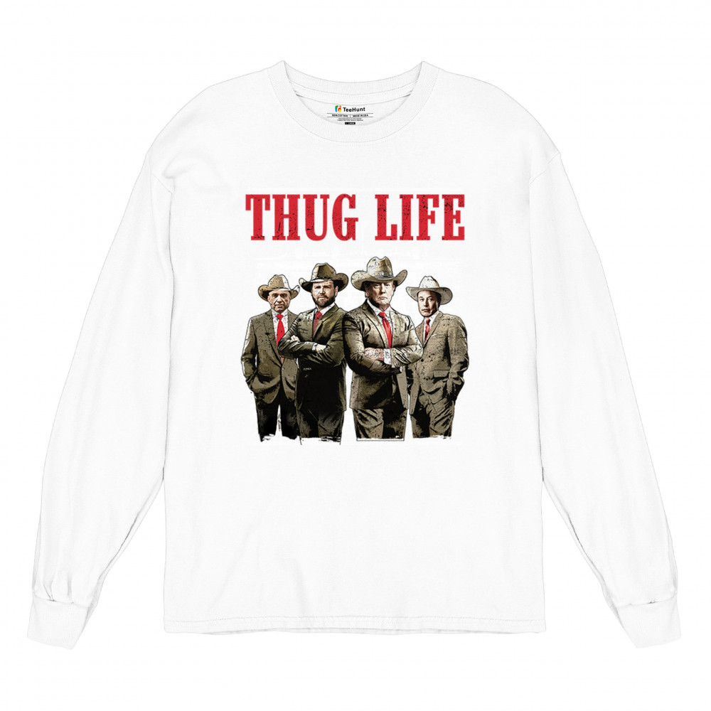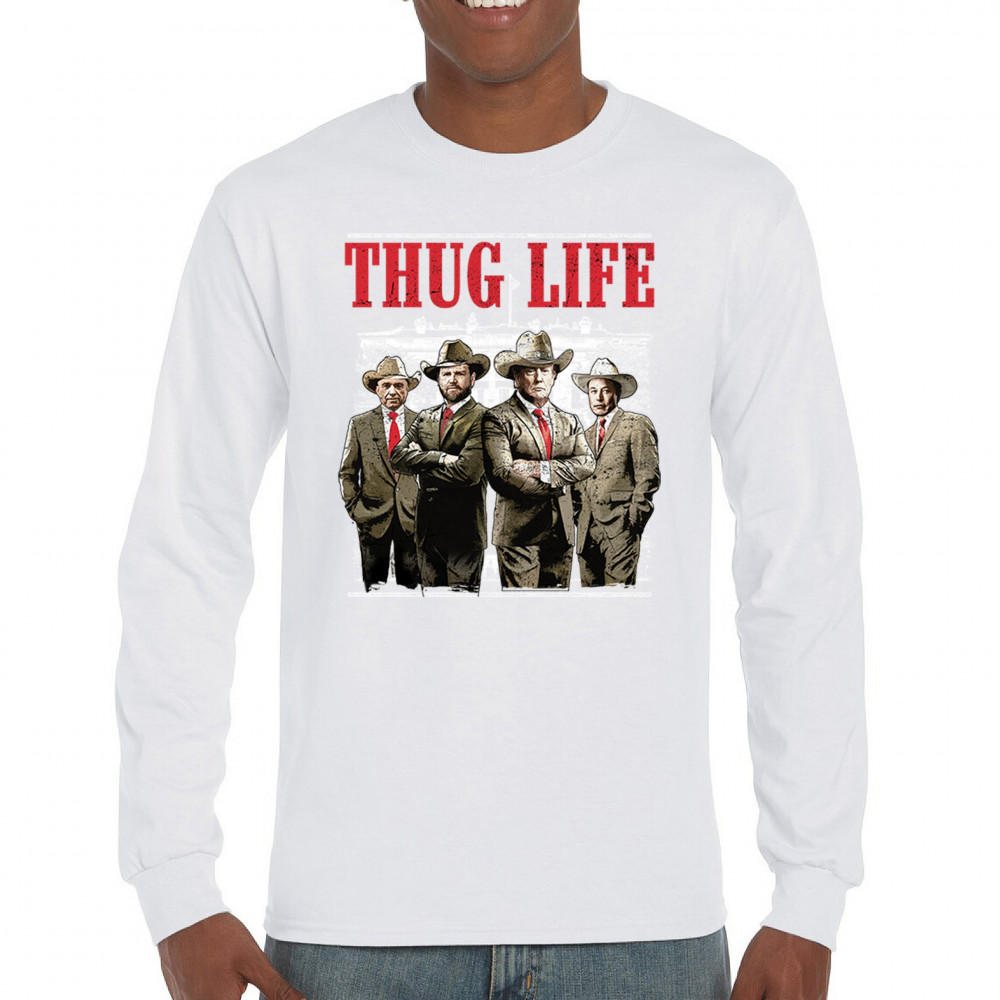 Make a statement with the Thug Life T-shirt, a must-have for every Republican and Trump supporter who stands for America First. Designed for those who believe in We The People Have Spoken, this shirt is perfect for rallies, events, or everyday wear. Featuring bold imagery and high-quality materials, it's a tribute to conservative values, the Red Wave, and the party of common sense. Get yours today and show your patriotic spirit.