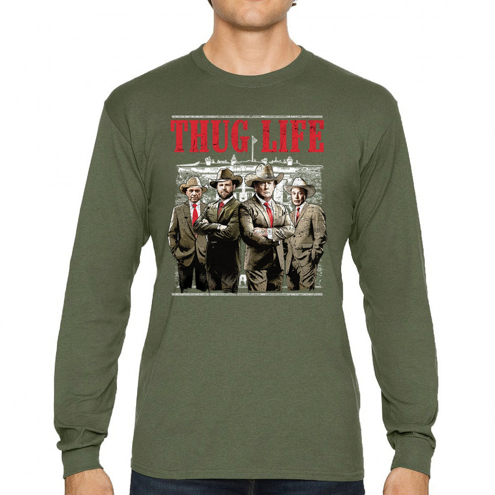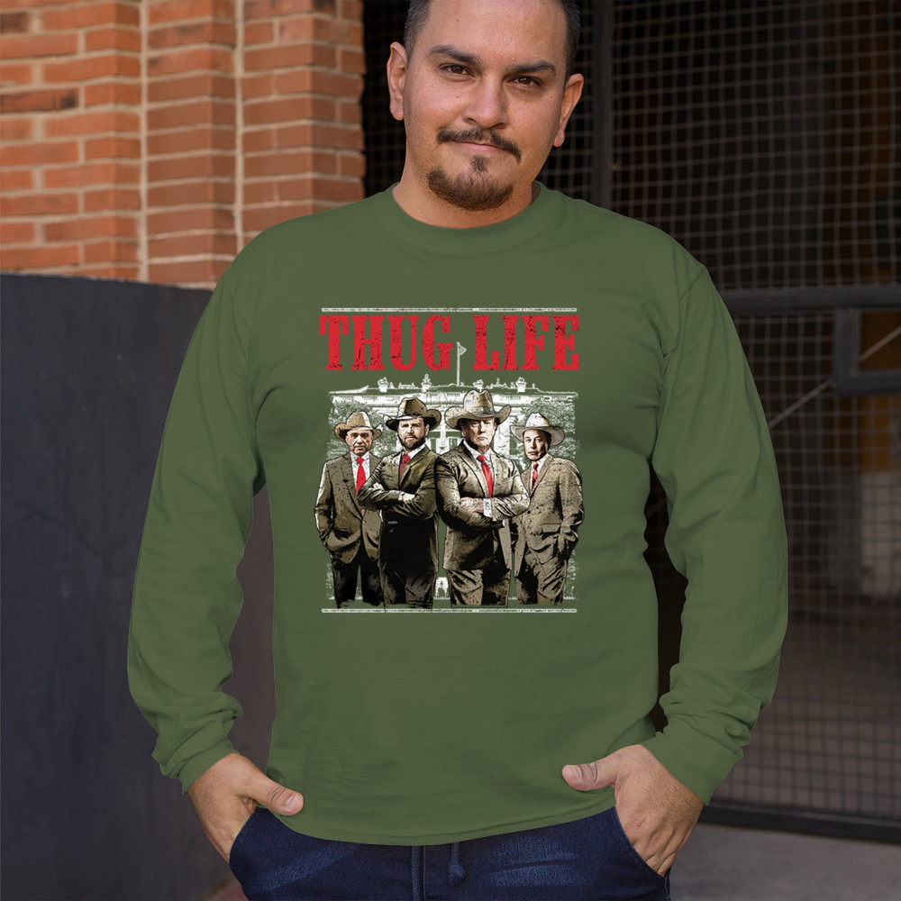 Make a statement with the Thug Life T-shirt, a must-have for every Republican and Trump supporter who stands for America First. Designed for those who believe in We The People Have Spoken, this shirt is perfect for rallies, events, or everyday wear. Featuring bold imagery and high-quality materials, it's a tribute to conservative values, the Red Wave, and the party of common sense. Get yours today and show your patriotic spirit.