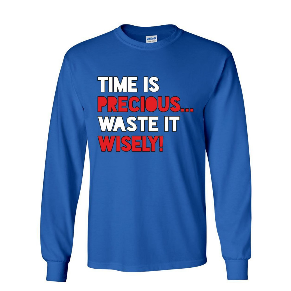 TIME IS PRECIOUS WASTE IT WISELY! time is precious waste it wisely long sleeve t-shirt college humor lazy fun tee royal blue