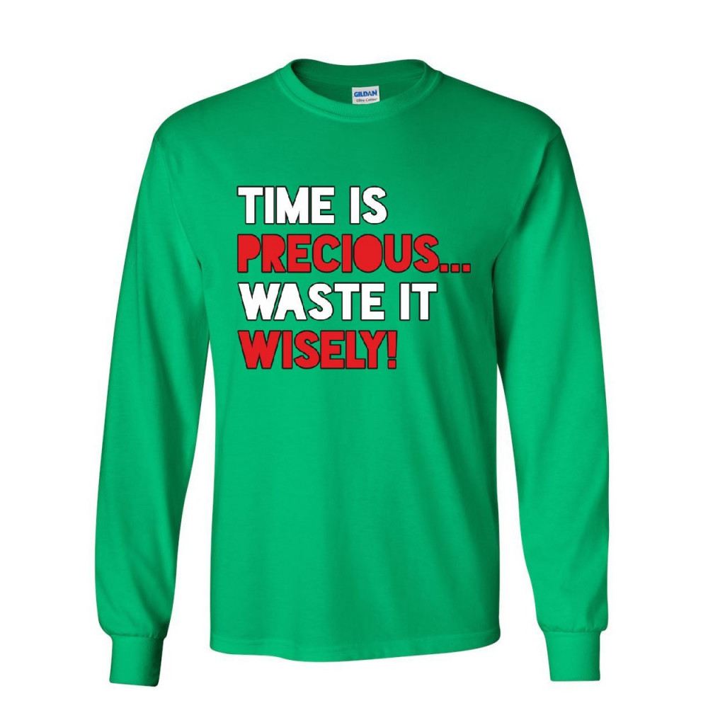 TIME IS PRECIOUS WASTE IT WISELY! time is precious waste it wisely long sleeve t-shirt college humor lazy fun tee green