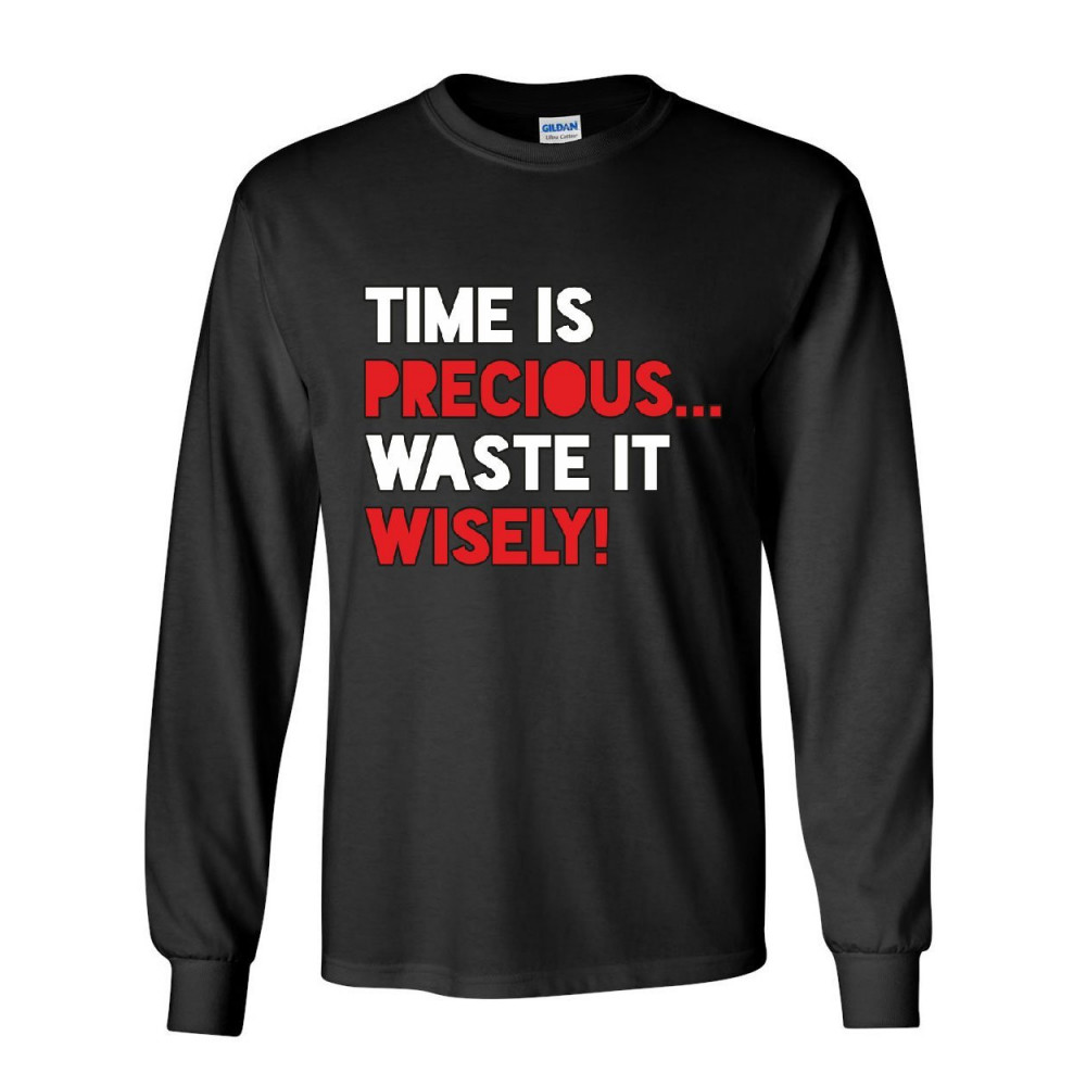TIME IS PRECIOUS WASTE IT WISELY! time is precious waste it wisely long sleeve t-shirt college humor lazy fun tee black