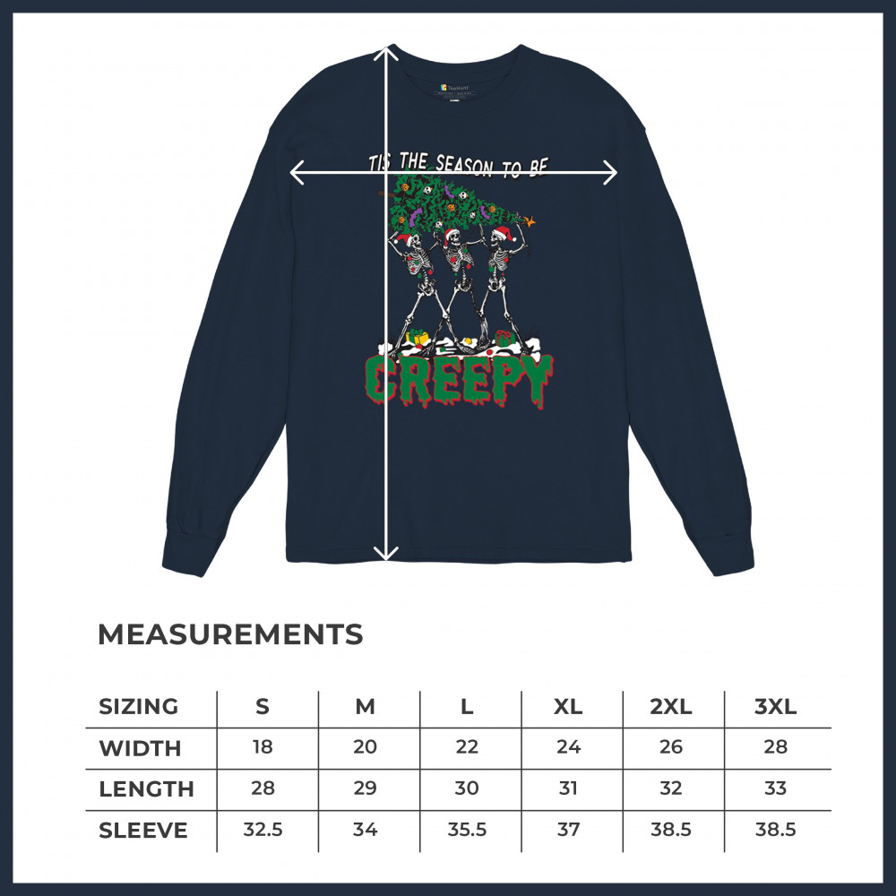 "Tis the Season to Be Creepy" combines holiday cheer with a hauntingly fun twist. This creative design features skeletons donning Santa hats as they carry a spooky Christmas tree decorated with eerie ornaments. Perfect for holiday gatherings, Secret Santa gifts, or themed parties, this design celebrates the festive and the macabre. Embrace the jolliest and creepiest bunch this season with this standout apparel.