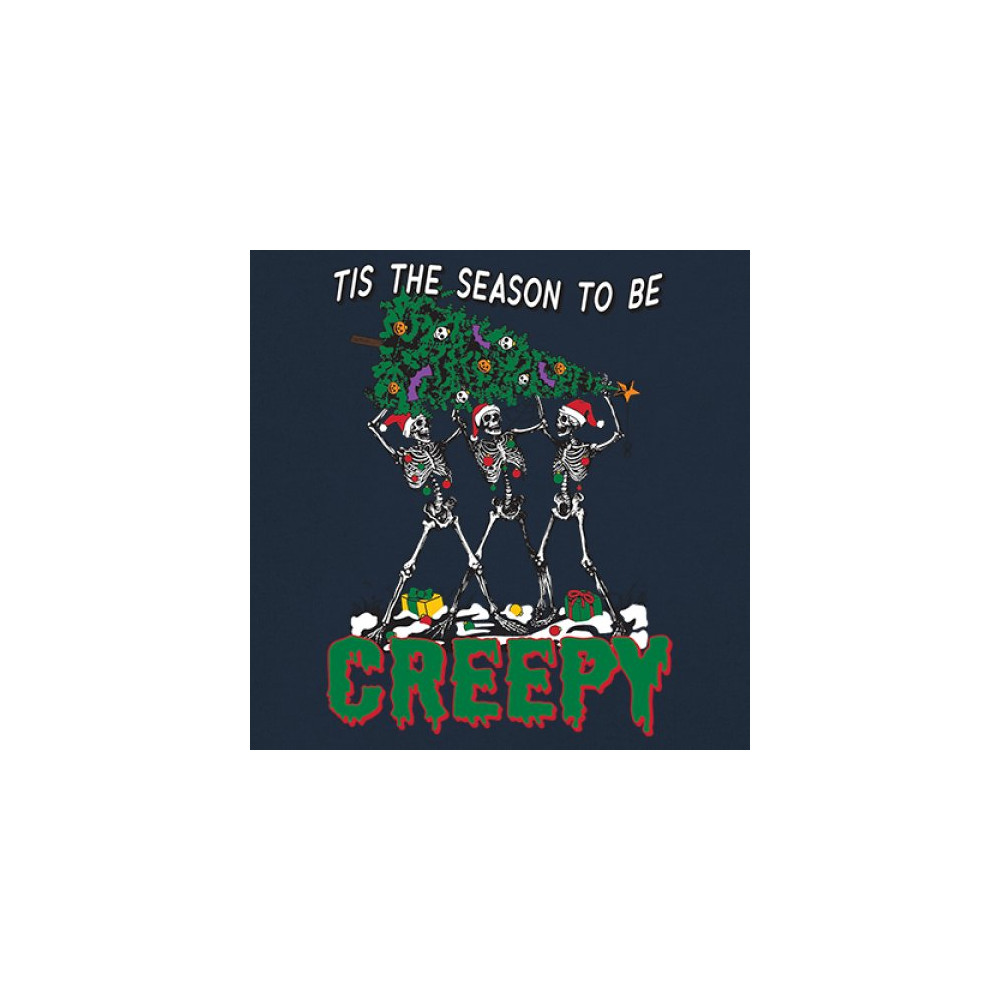 Spooky meets festive with "Tis the Season to Be Creepy" skeleton Christmas design. Perfect for holiday parties, Secret Santa, and unique gifts.