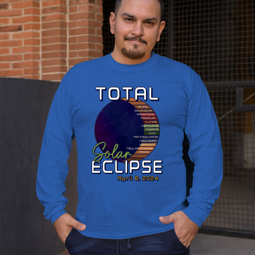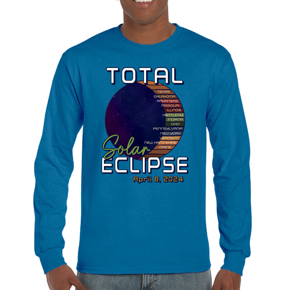 Embrace the celestial spectacle with our solar eclipse graphic design. Capturing the mesmerizing dance between sun and moon, this shirt is a must for astronomy lovers. Wear it proudly and celebrate the wonder of a total solar eclipse!