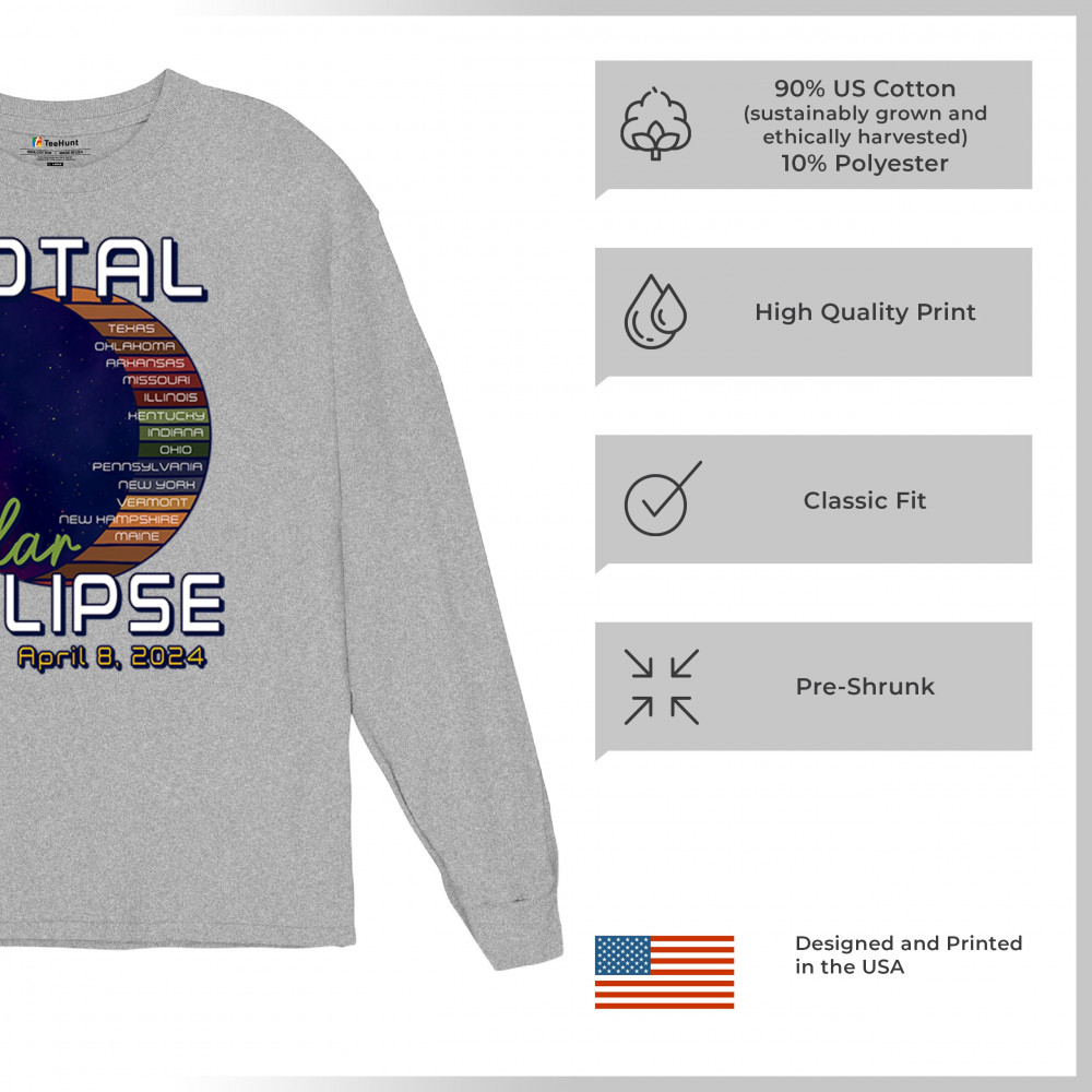 Embrace the celestial spectacle with our solar eclipse graphic design. Capturing the mesmerizing dance between sun and moon, this shirt is a must for astronomy lovers. Wear it proudly and celebrate the wonder of a total solar eclipse!