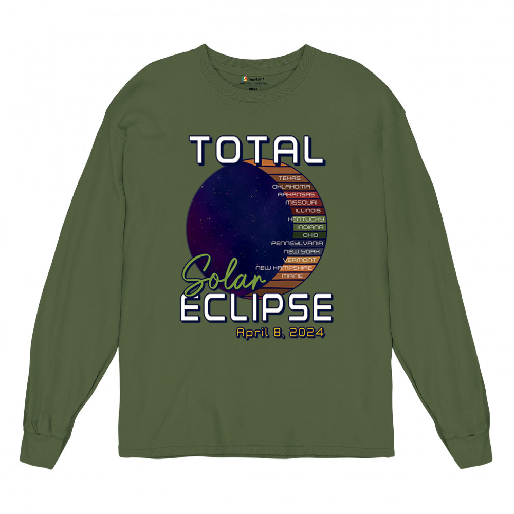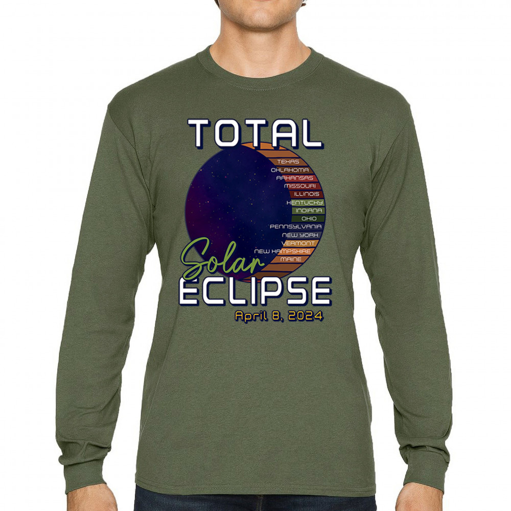 Embrace the celestial spectacle with our solar eclipse graphic design. Capturing the mesmerizing dance between sun and moon, this shirt is a must for astronomy lovers. Wear it proudly and celebrate the wonder of a total solar eclipse!