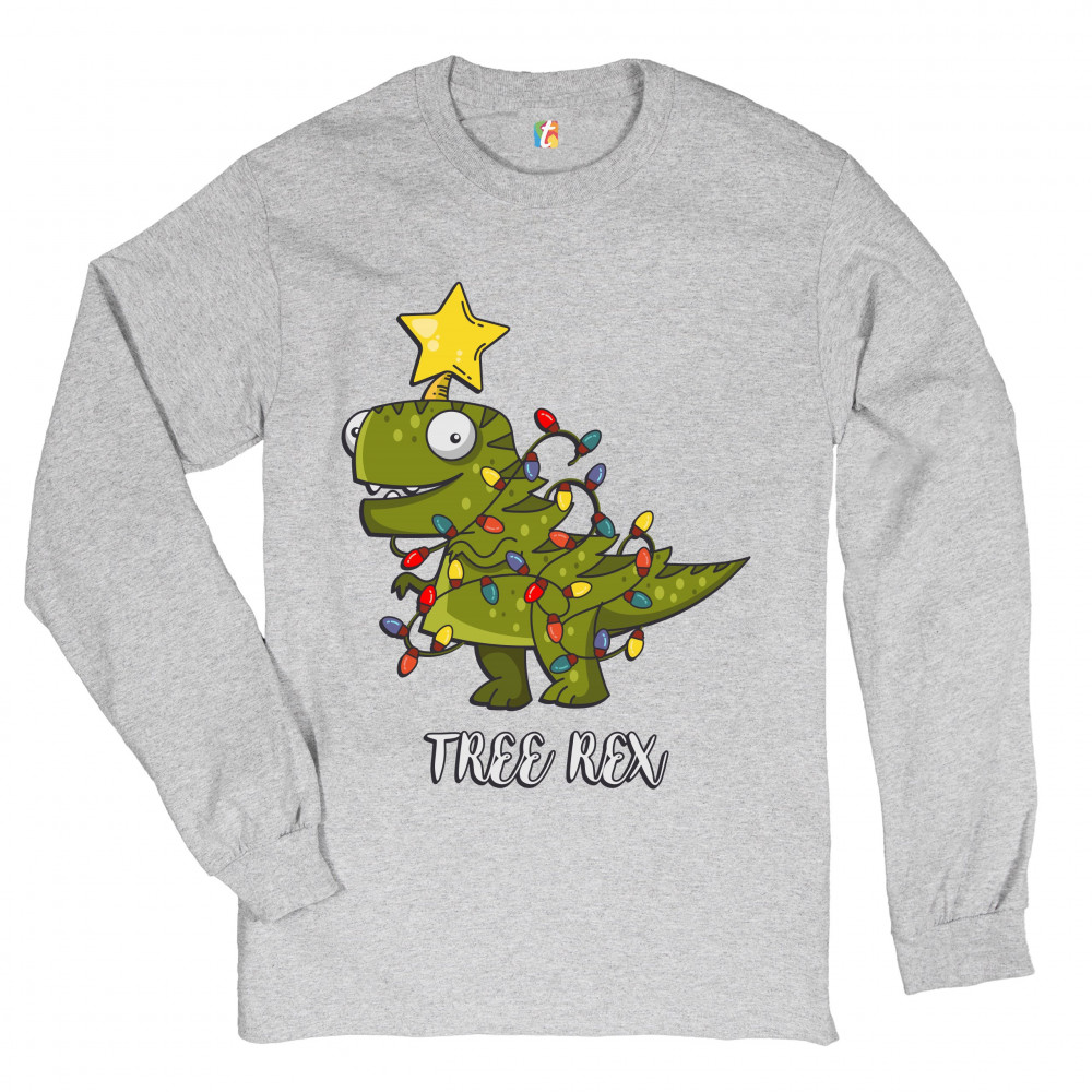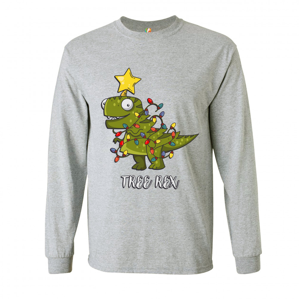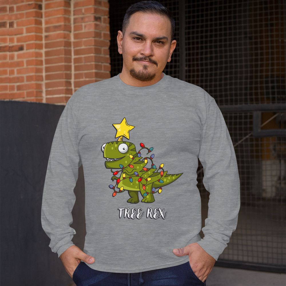 TREE REX long sleeve t-shirt funny tyronnasaurus rex christmas tree dinosaur gray