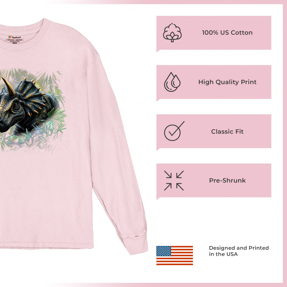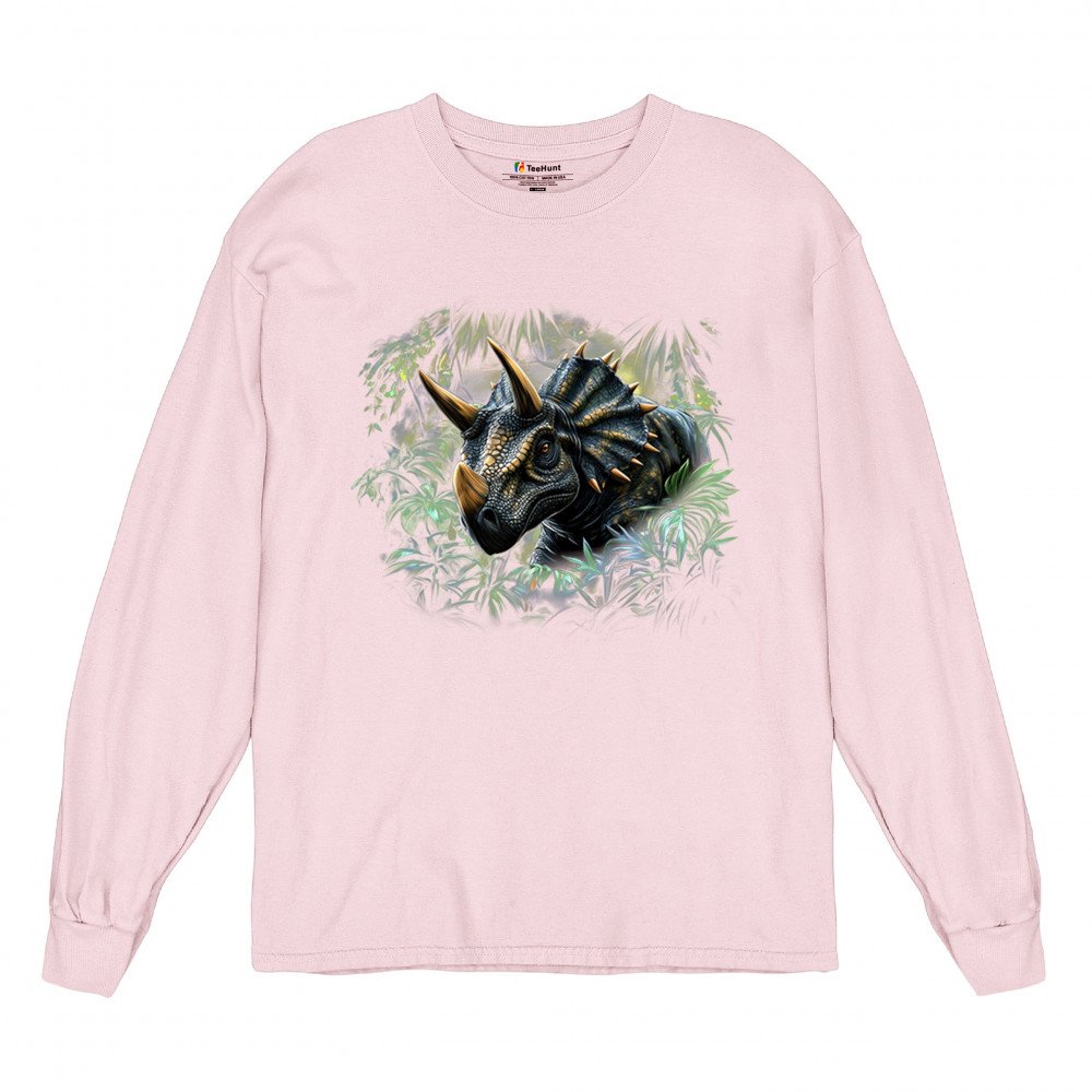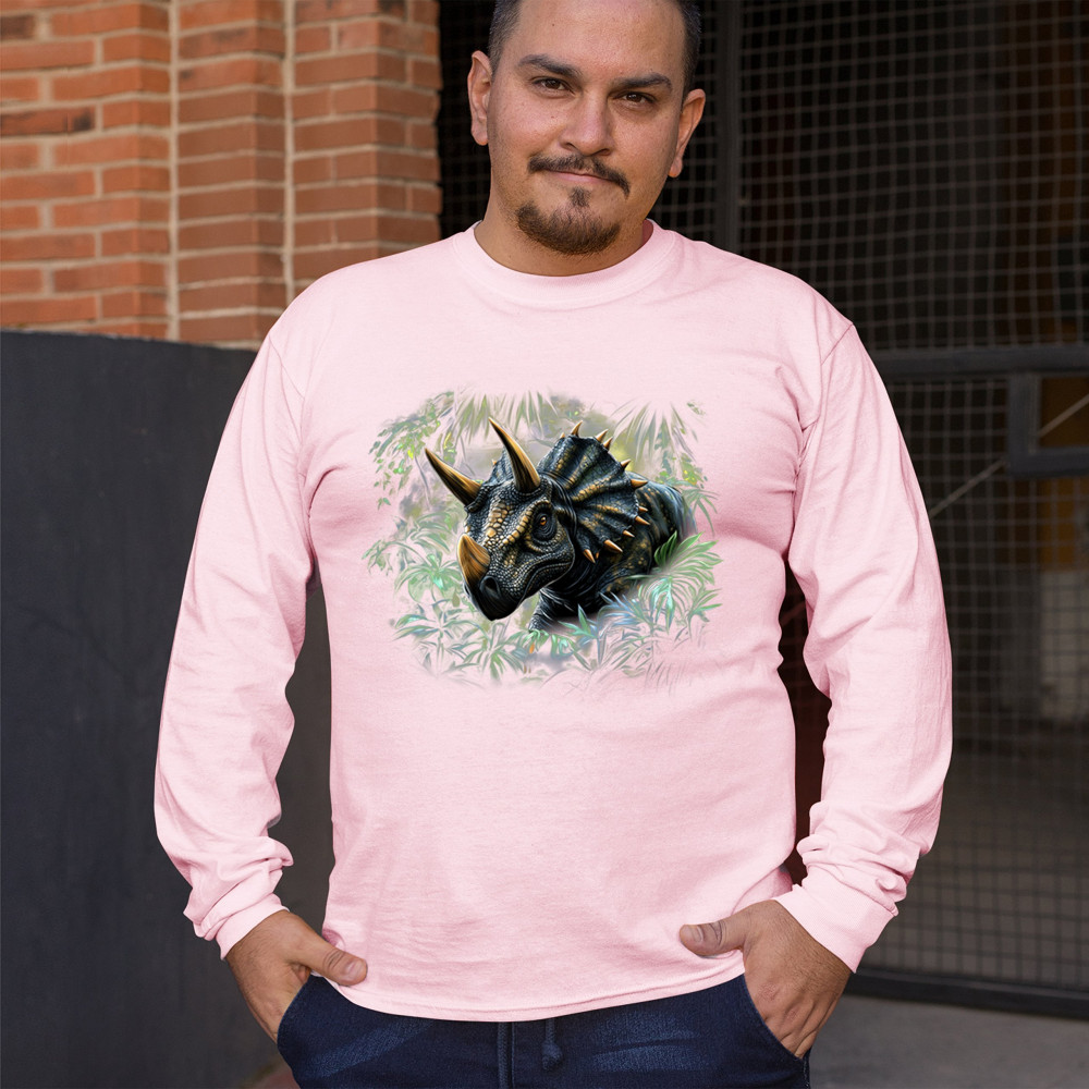 Charge into the past with this vivid triceratops design. Featuring a hyper-detailed horned dinosaur surrounded by jungle leaves, this design is perfect for dino lovers, fossil enthusiasts, and anyone fascinated by prehistoric beasts. Great for Jurassic parties, safari parks, or museum visits, it brings ancient strength to life.