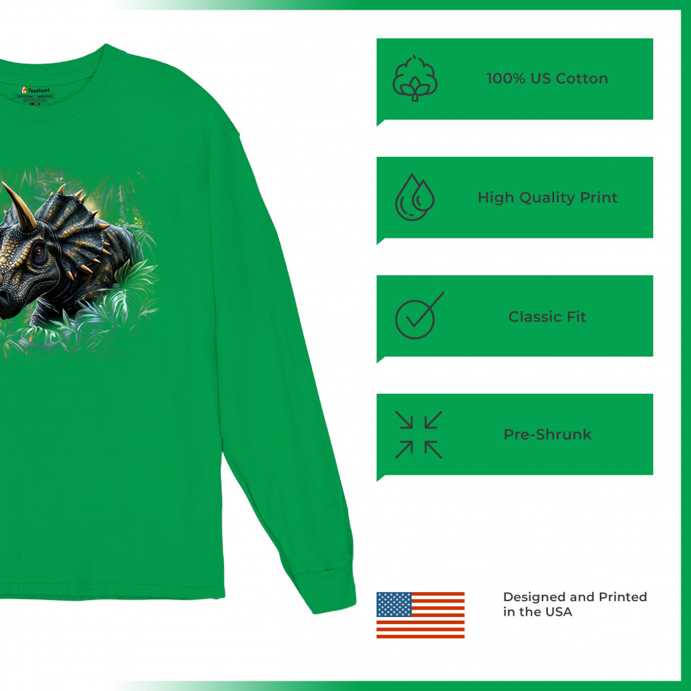 Realistic triceratops in jungle setting. Great for dino fans, fossil lovers, Jurassic exhibits, and prehistoric outdoor adventures.