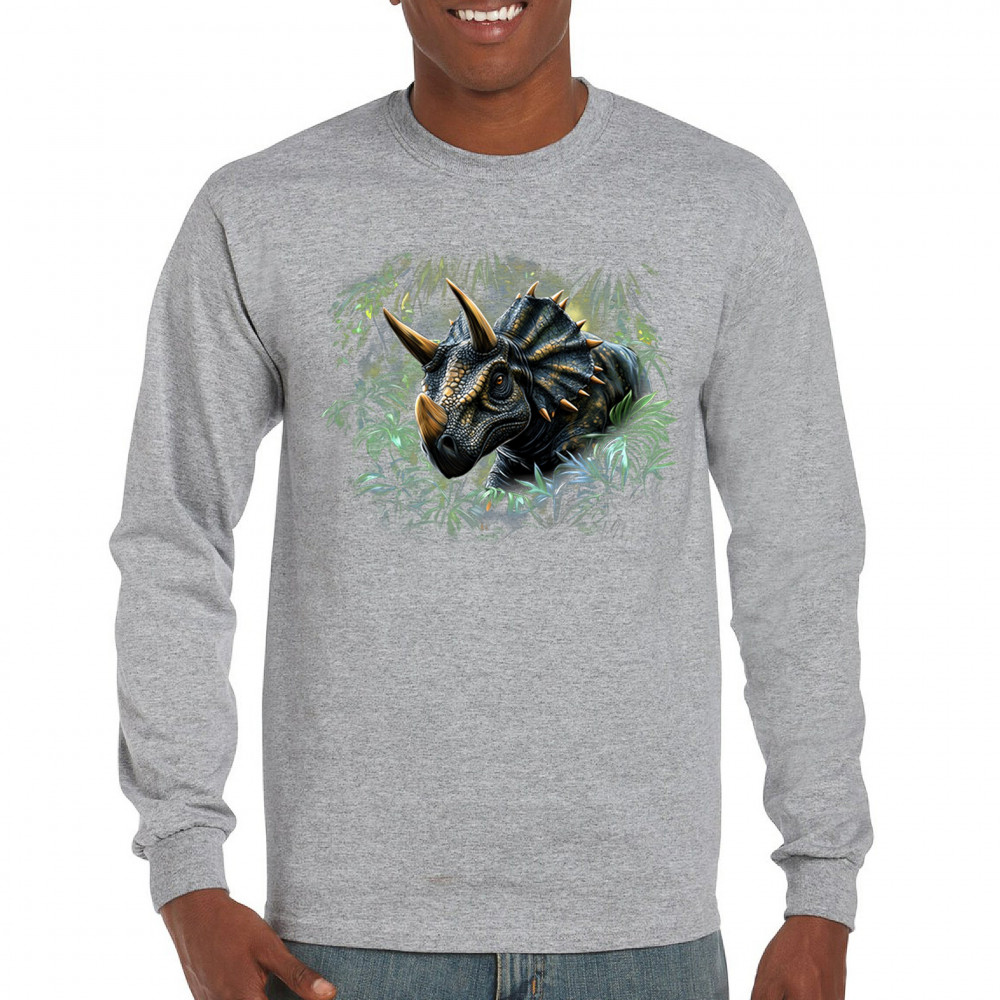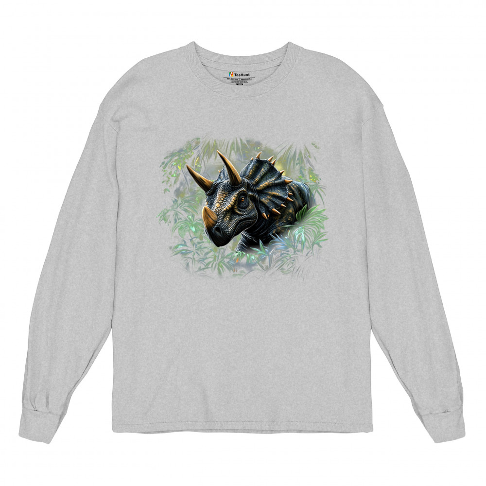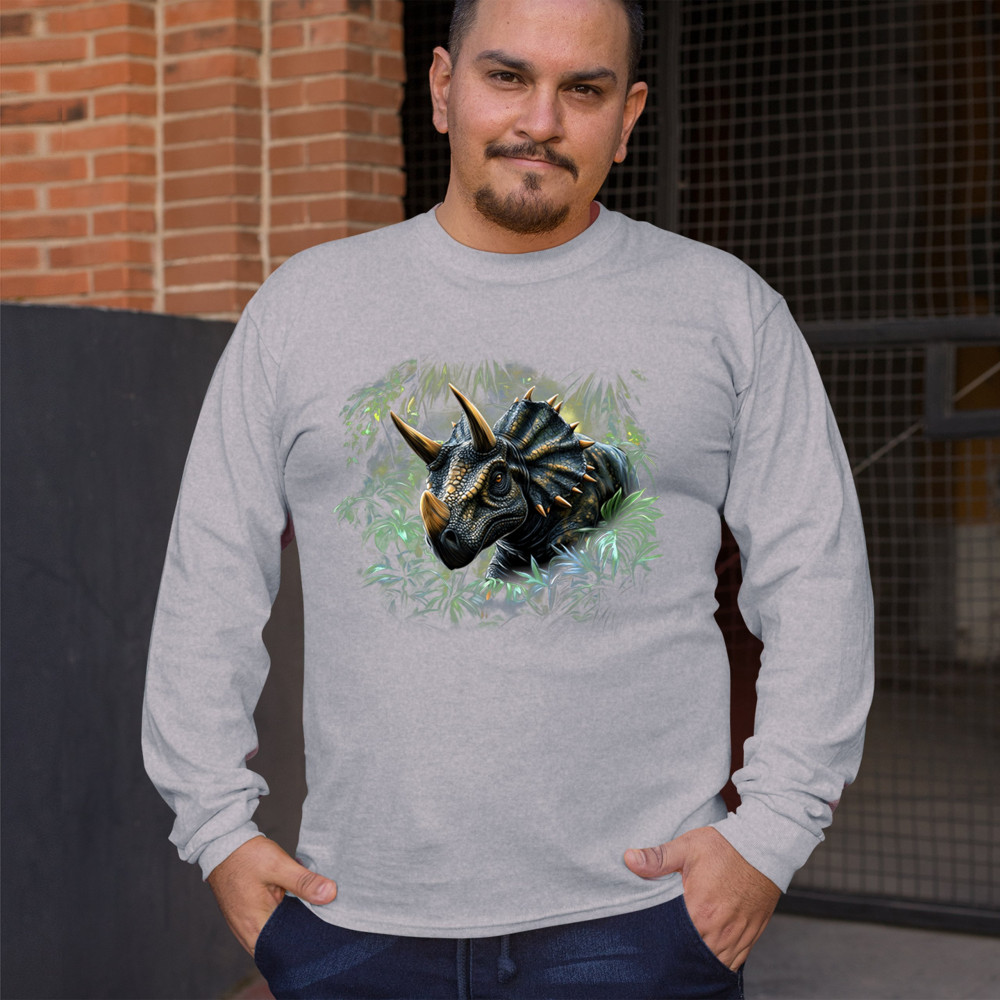 Realistic triceratops in jungle setting. Great for dino fans, fossil lovers, Jurassic exhibits, and prehistoric outdoor adventures.