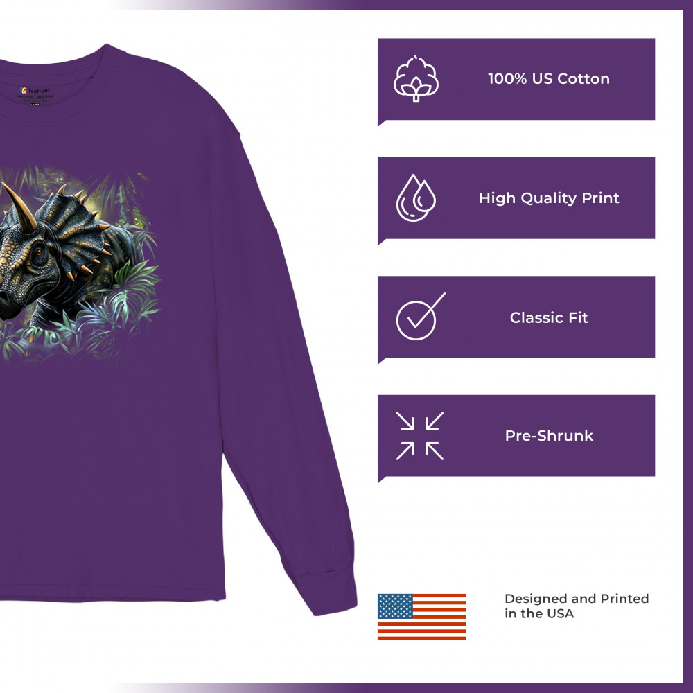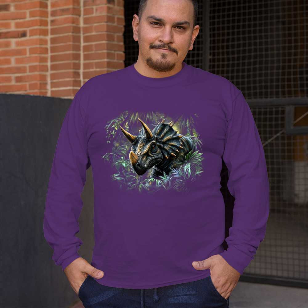 Charge into the past with this vivid triceratops design. Featuring a hyper-detailed horned dinosaur surrounded by jungle leaves, this design is perfect for dino lovers, fossil enthusiasts, and anyone fascinated by prehistoric beasts. Great for Jurassic parties, safari parks, or museum visits, it brings ancient strength to life.