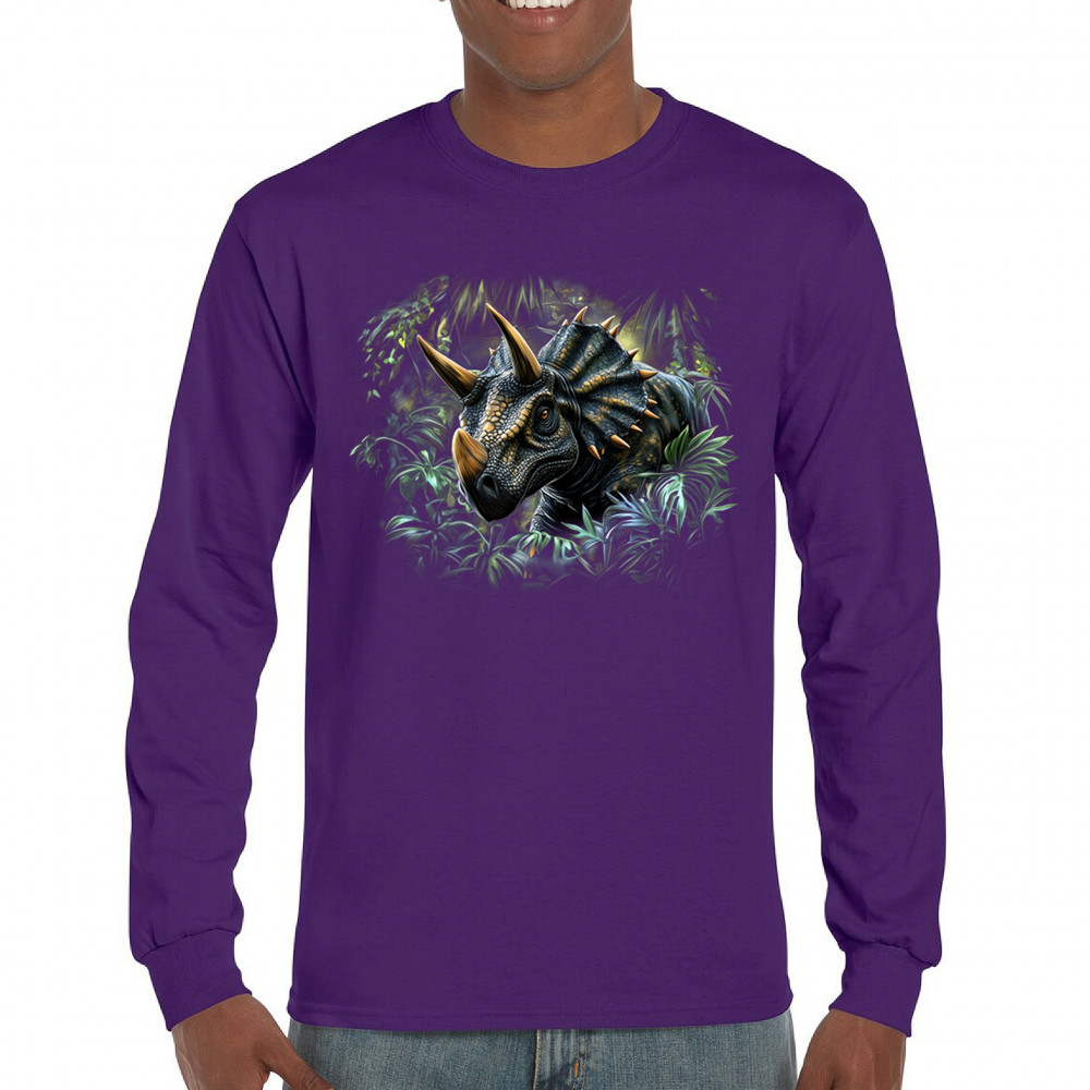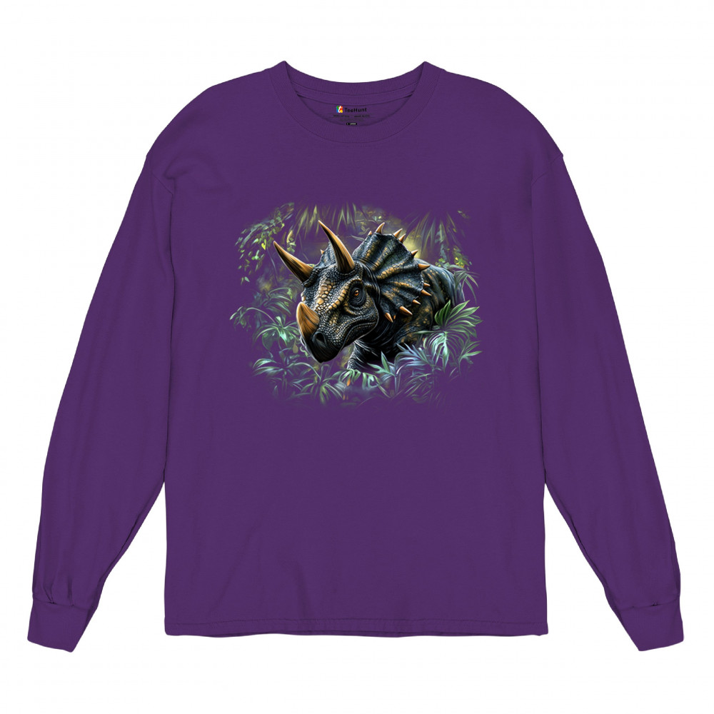 Realistic triceratops in jungle setting. Great for dino fans, fossil lovers, Jurassic exhibits, and prehistoric outdoor adventures.