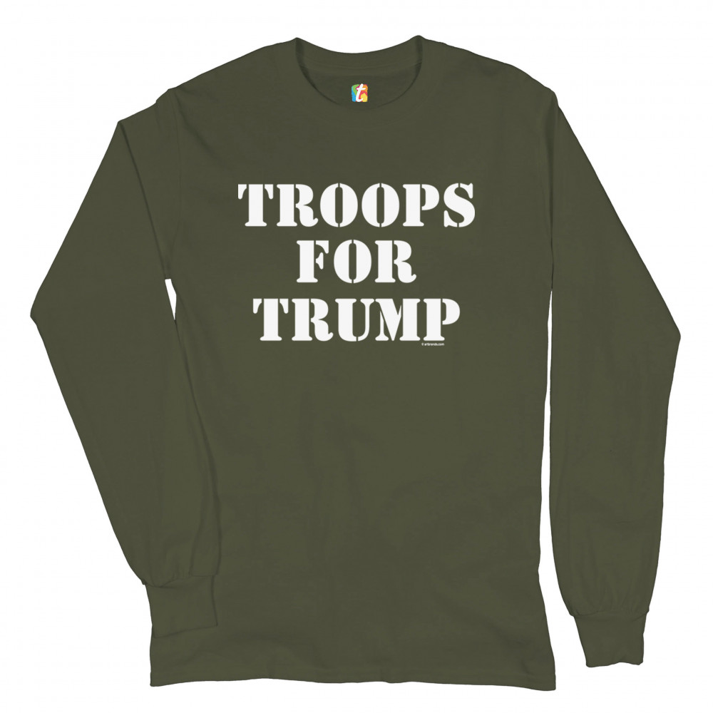 TROOPS FOR TRUMP long sleeve t-shirt donald trump 2020 support our troops military green