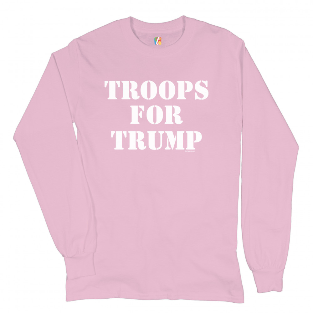TROOPS FOR TRUMP long sleeve t-shirt donald trump 2020 support our troops light pink