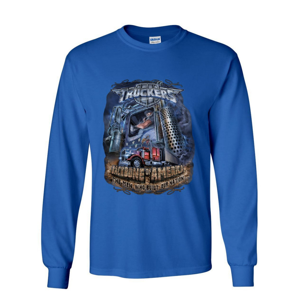 TRUCKERS - BACKBONE OF AMERICA truckers backbone of america long sleeve t-shirt truck driver hauler diesel tee royal blue