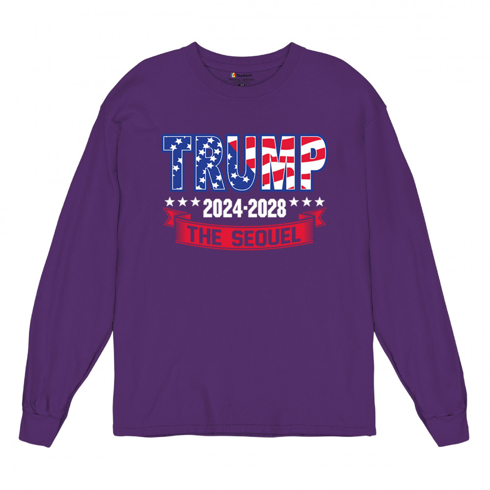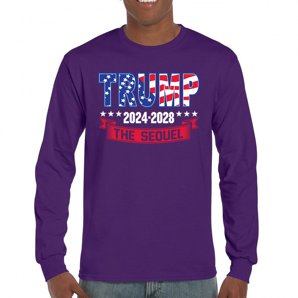 Stand with Trump for 2024-2028 in "The Sequel" design, celebrating America First, conservative values, and 4 more years of patriotic vision.