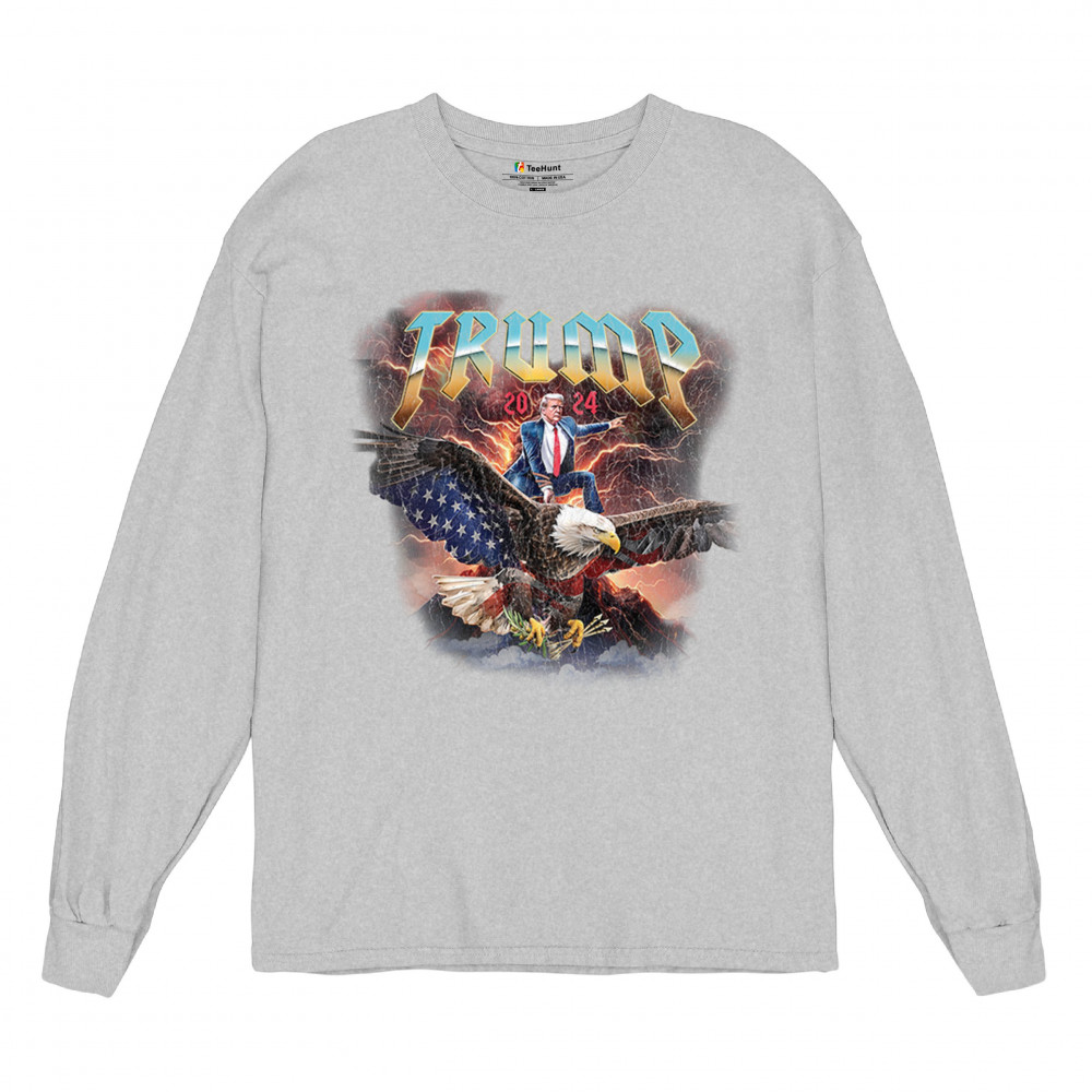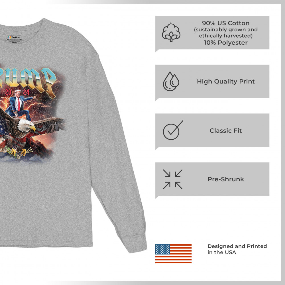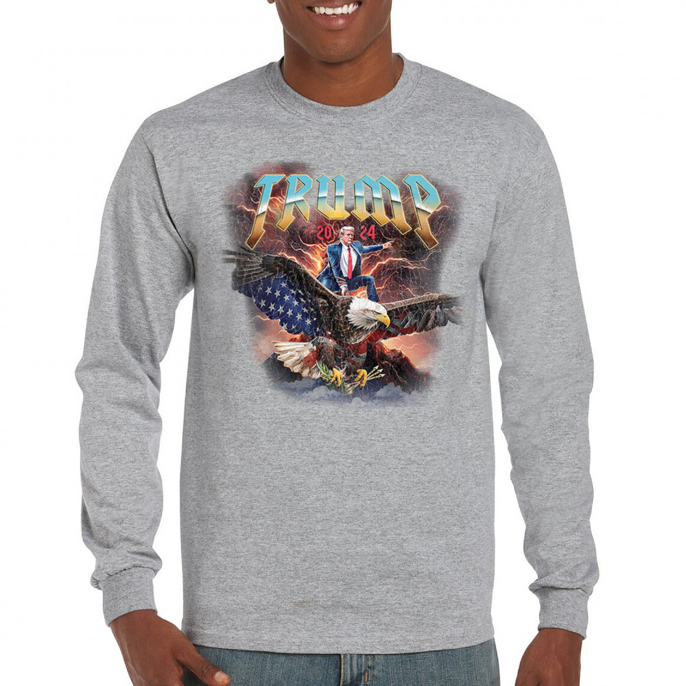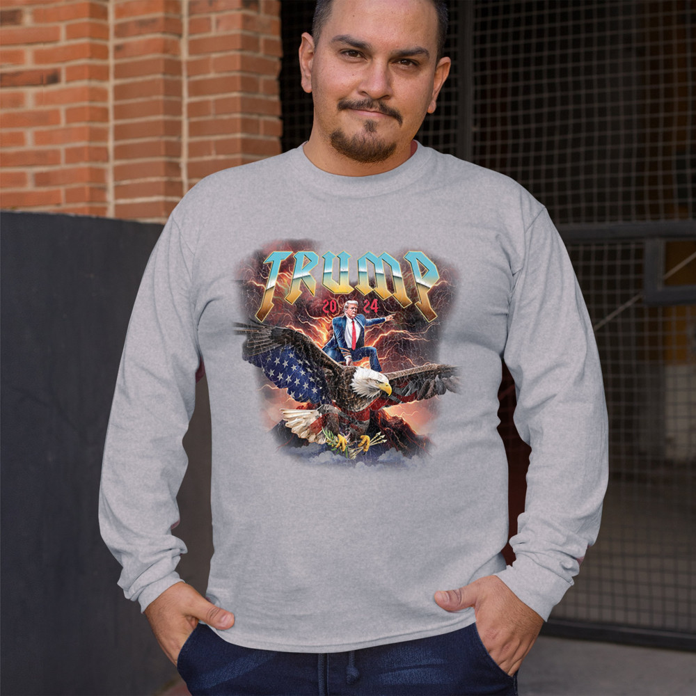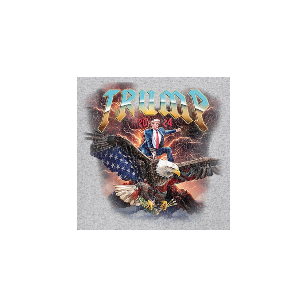 Stand out with our "Trump 2024" design featuring Trump riding an eagle. Perfect for rallies and patriotic events. Show your support with pride and confidence.
