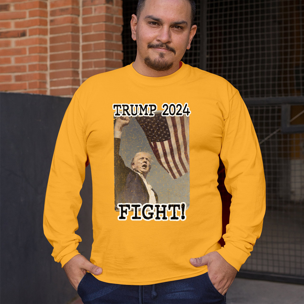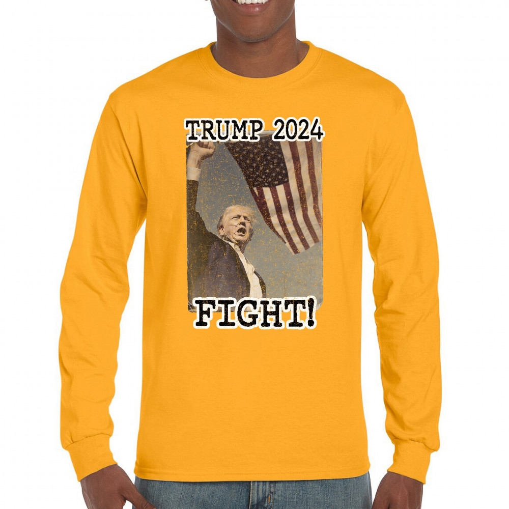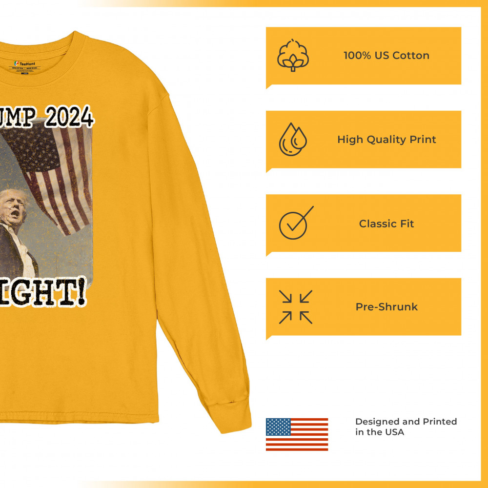 Bold Trump design with American flag, perfect for rallies and patriotic events. Show your conservative pride and support for the America first movement.
