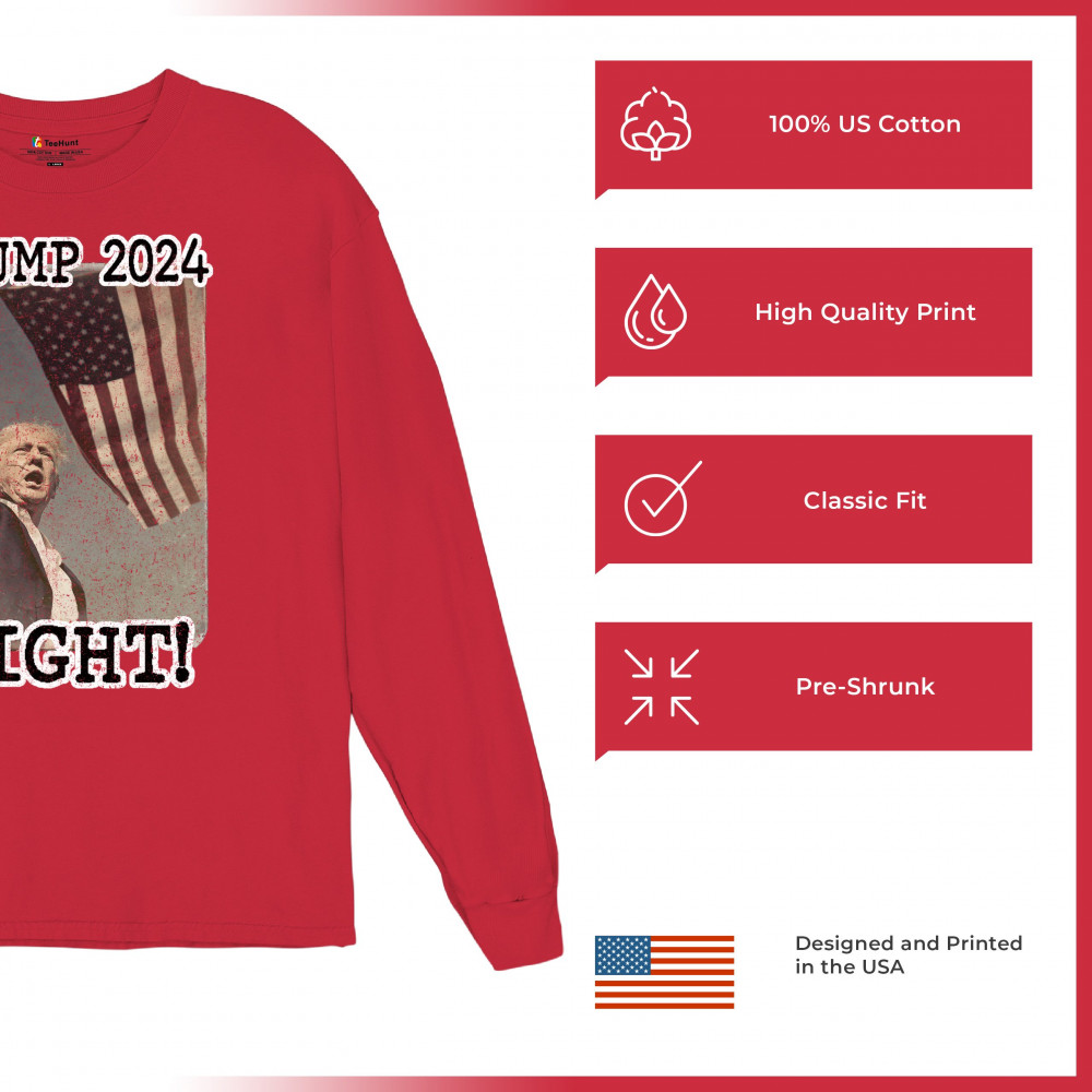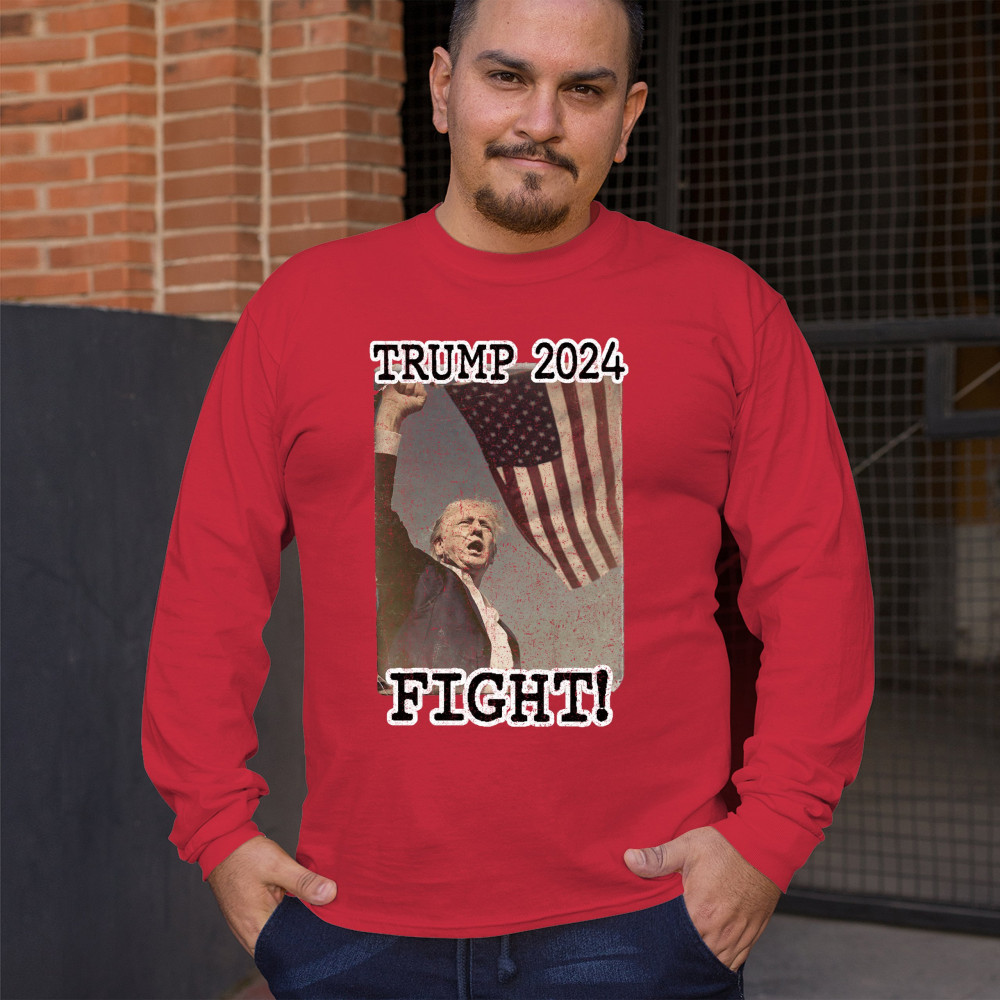 Bold Trump design with American flag, perfect for rallies and patriotic events. Show your conservative pride and support for the America first movement.