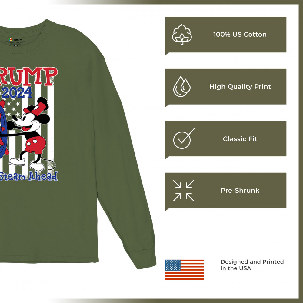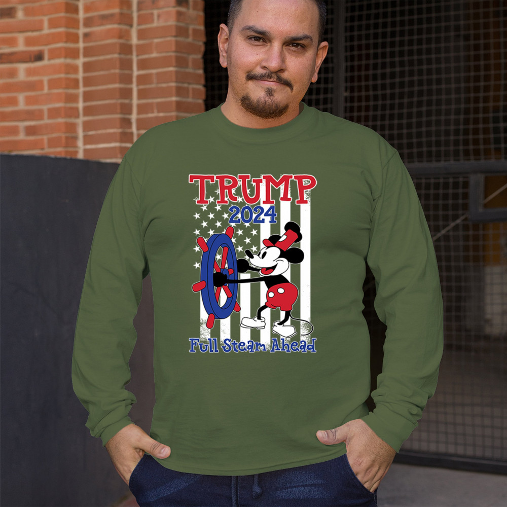 Show your support for Trump with the "Full Steam Ahead" design, symbolizing conservative values and America's resilience. Perfect for rallies and daily wear.
