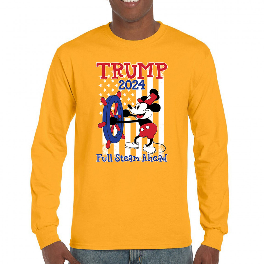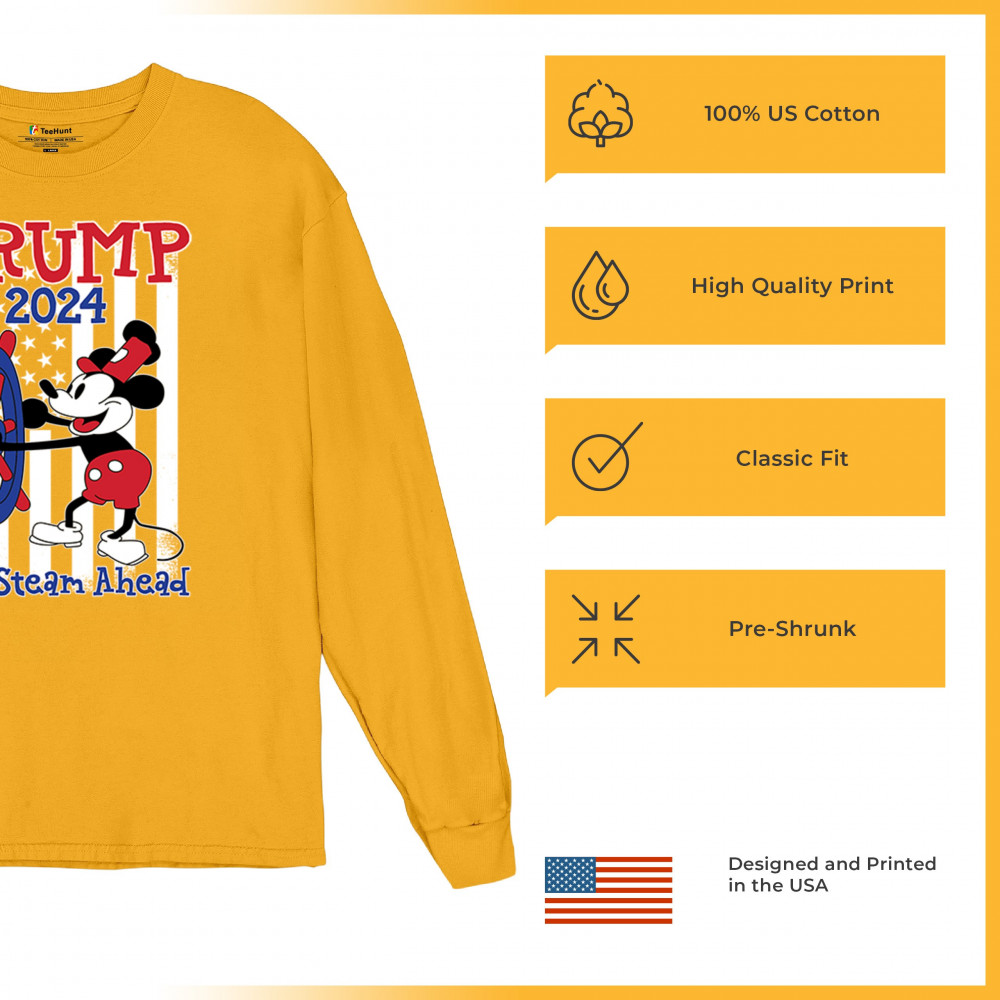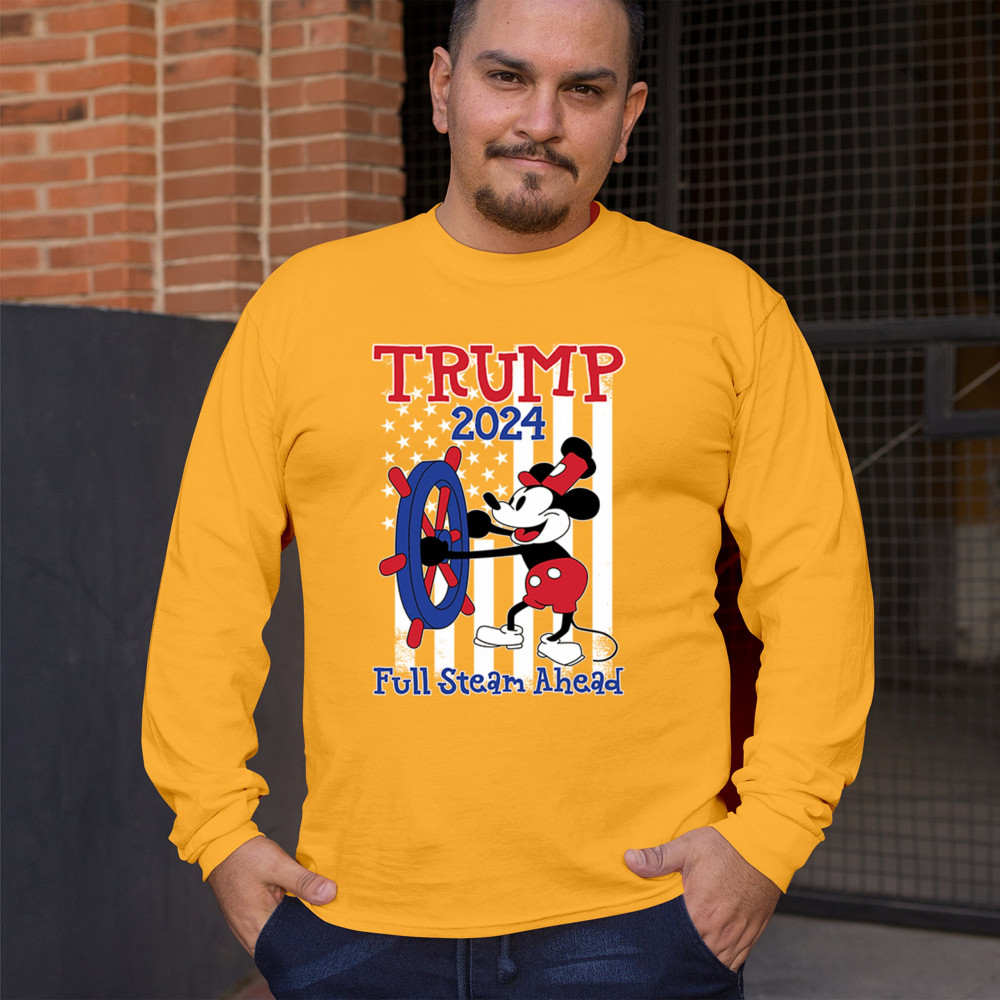 Show your support for Trump with the "Full Steam Ahead" design, symbolizing conservative values and America's resilience. Perfect for rallies and daily wear.
