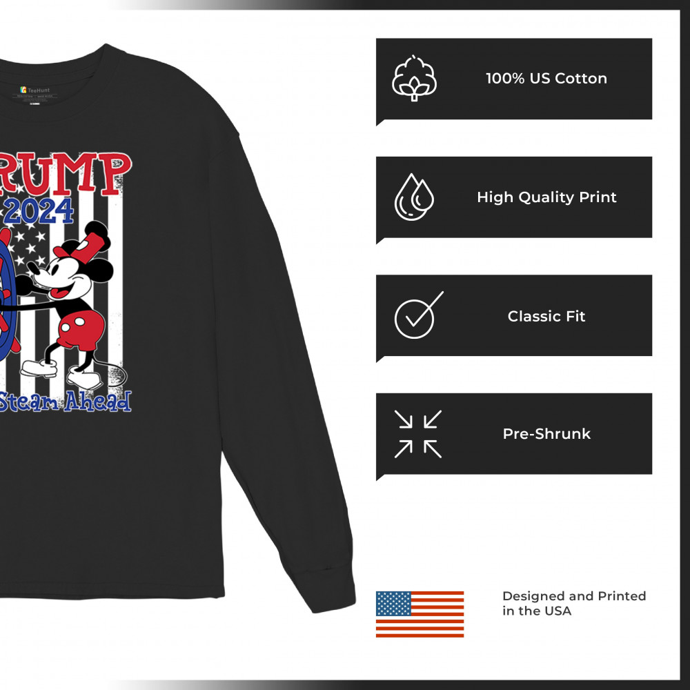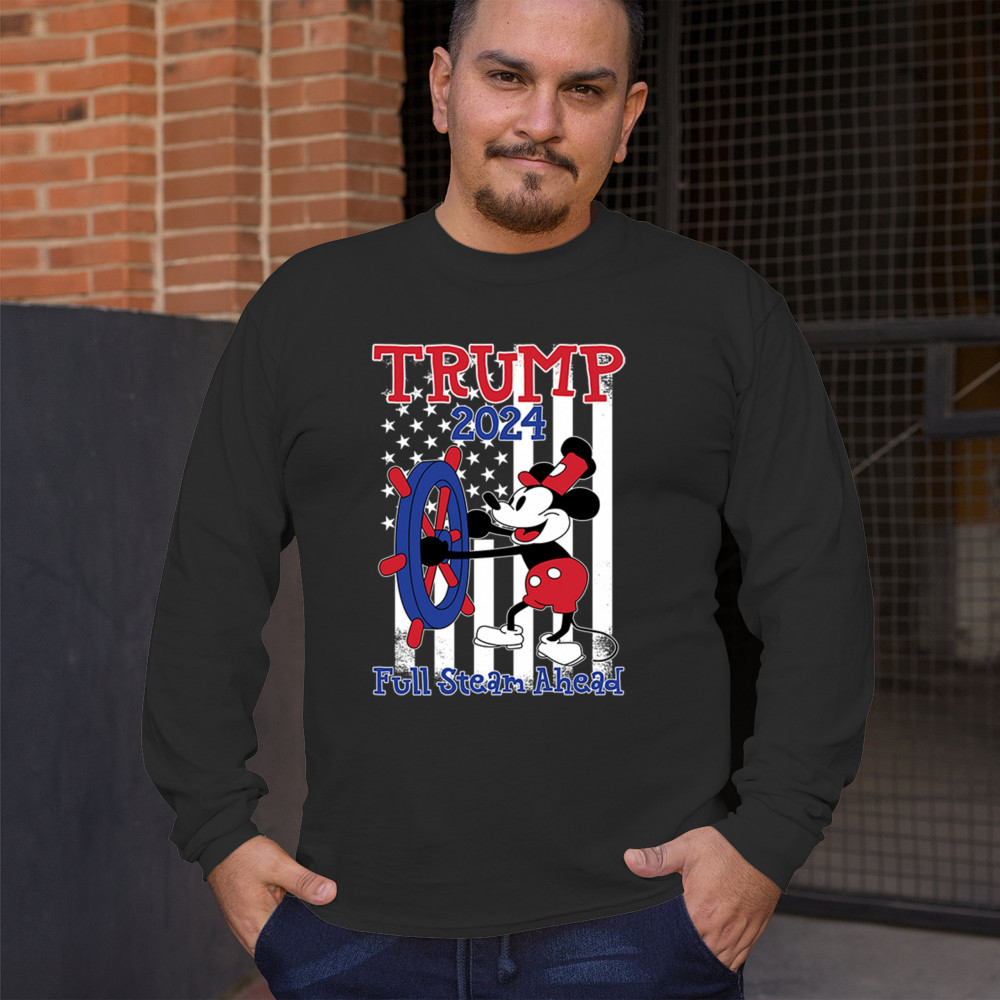 Show your support for Trump with the "Full Steam Ahead" design, symbolizing conservative values and America's resilience. Perfect for rallies and daily wear.