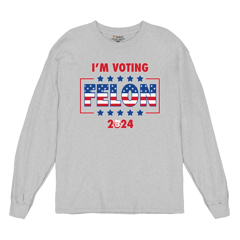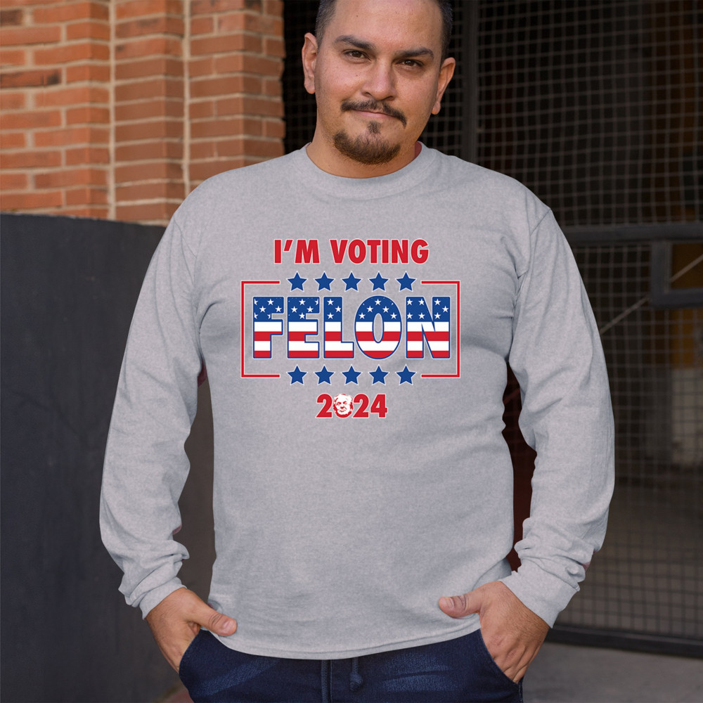 Show your support with the "I'm Voting Felon 2024" design, perfect for conservative patriots and Trump supporters. Featuring an American flag motif.