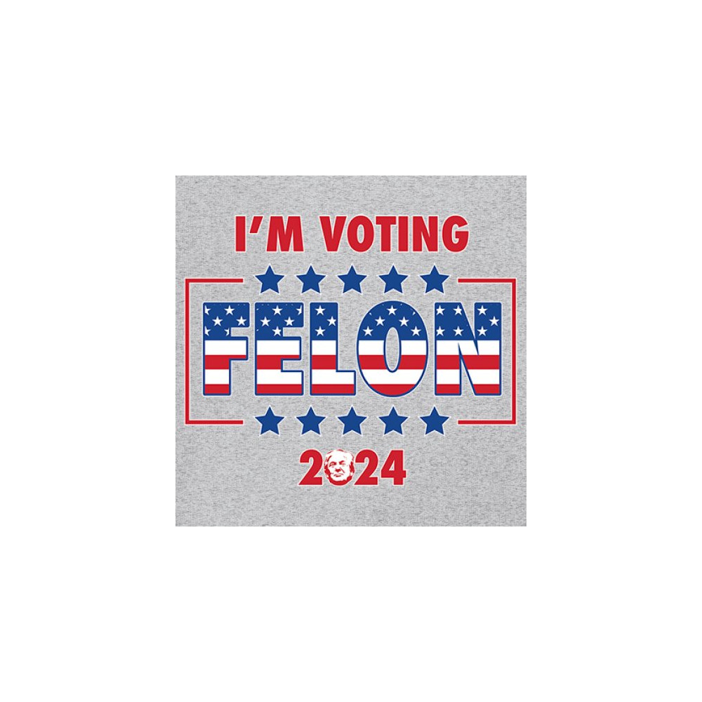 Stand out and express your political beliefs with our "I'm Voting Felon 2024" design. This bold and eye-catching design is perfect for conservative patriots and Trump supporters. Featuring a vibrant American flag motif, it’s ideal for rallies, political events, and daily wear. Show your commitment to America First and your defiance against opposition. This design is a perfect gift for like-minded friends and family who support the same values and are proud to show it.