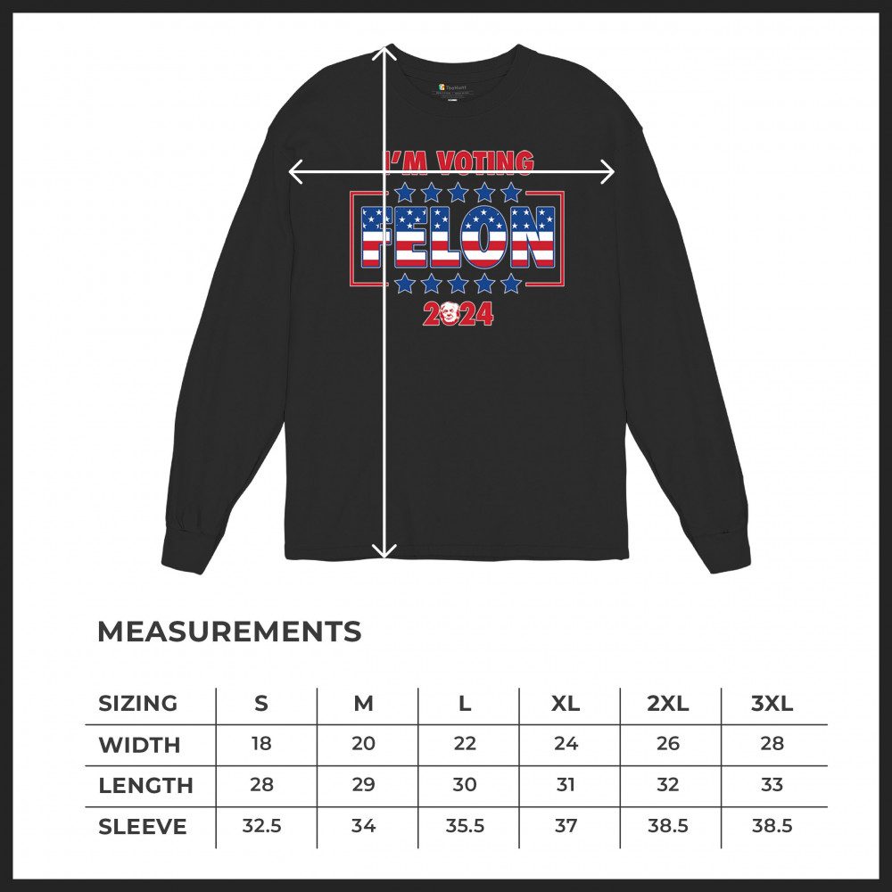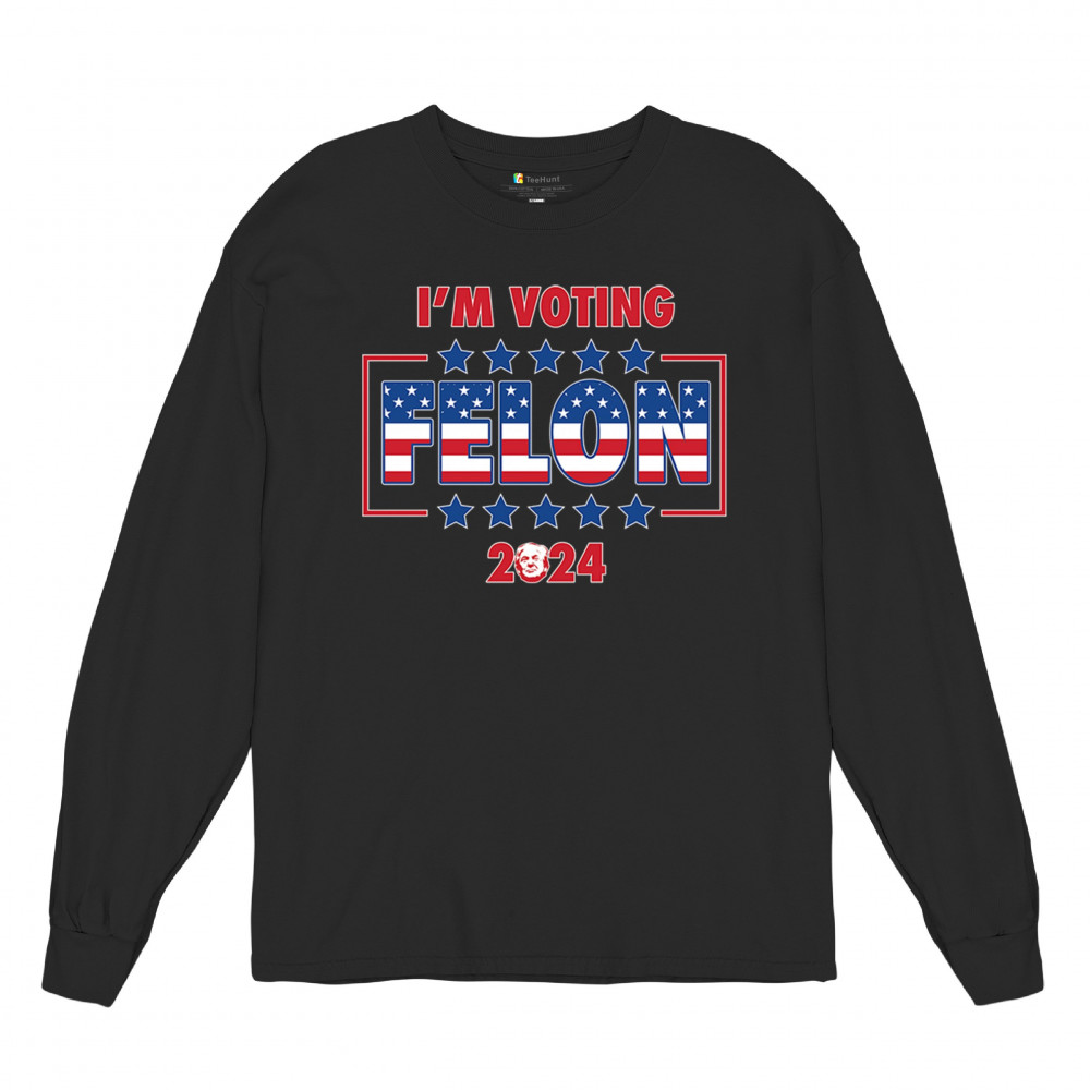 Show your support with the "I'm Voting Felon 2024" design, perfect for conservative patriots and Trump supporters. Featuring an American flag motif.