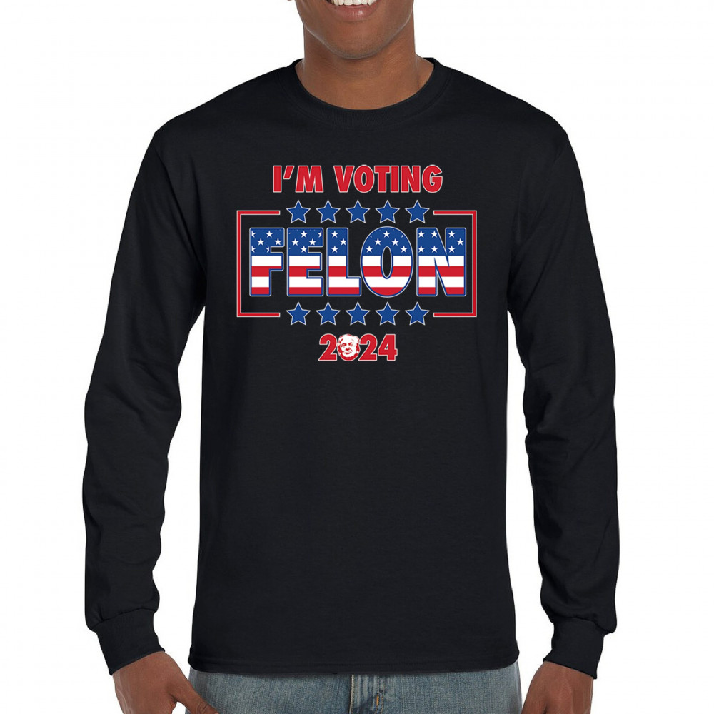 Stand out and express your political beliefs with our "I'm Voting Felon 2024" design. This bold and eye-catching design is perfect for conservative patriots and Trump supporters. Featuring a vibrant American flag motif, it’s ideal for rallies, political events, and daily wear. Show your commitment to America First and your defiance against opposition. This design is a perfect gift for like-minded friends and family who support the same values and are proud to show it.
