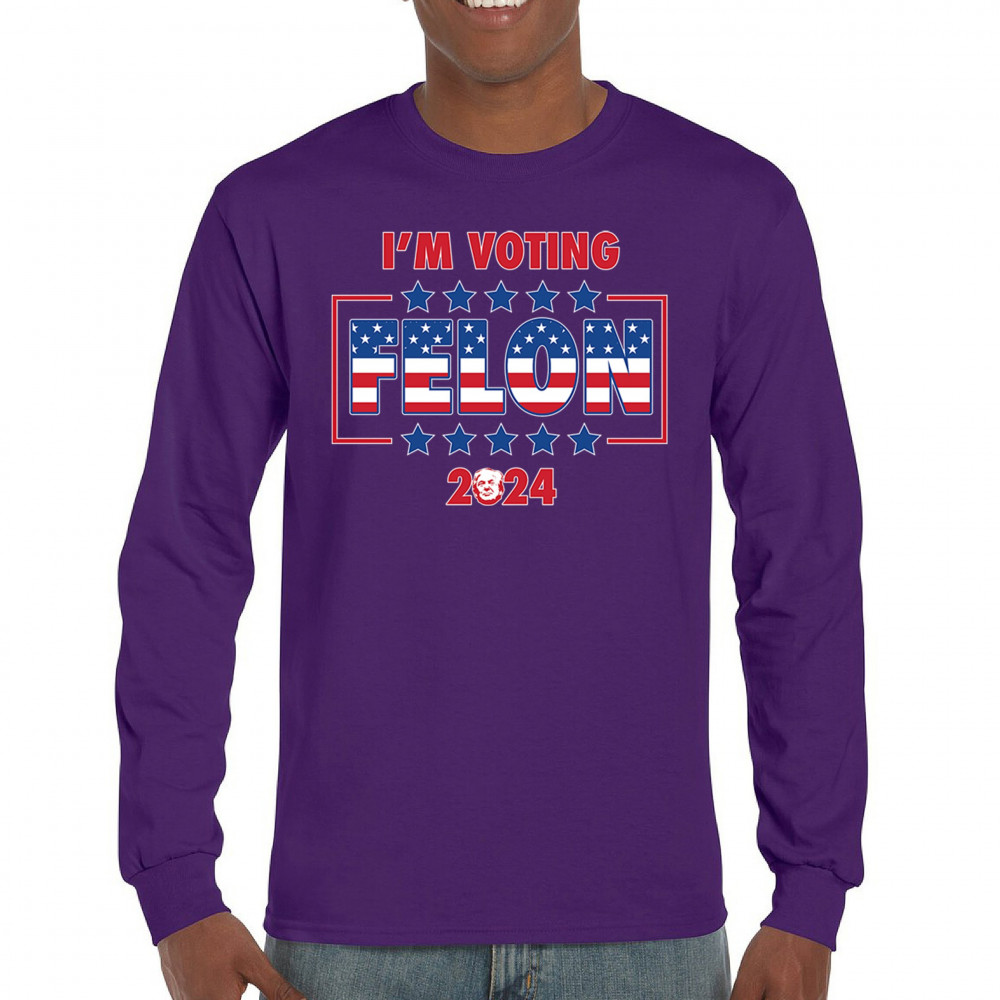 Show your support with the "I'm Voting Felon 2024" design, perfect for conservative patriots and Trump supporters. Featuring an American flag motif.