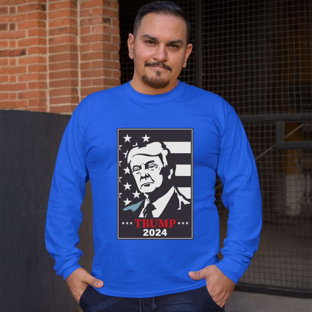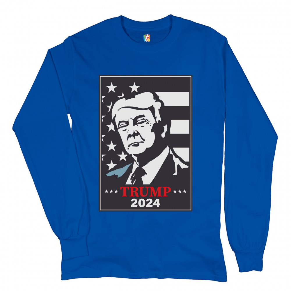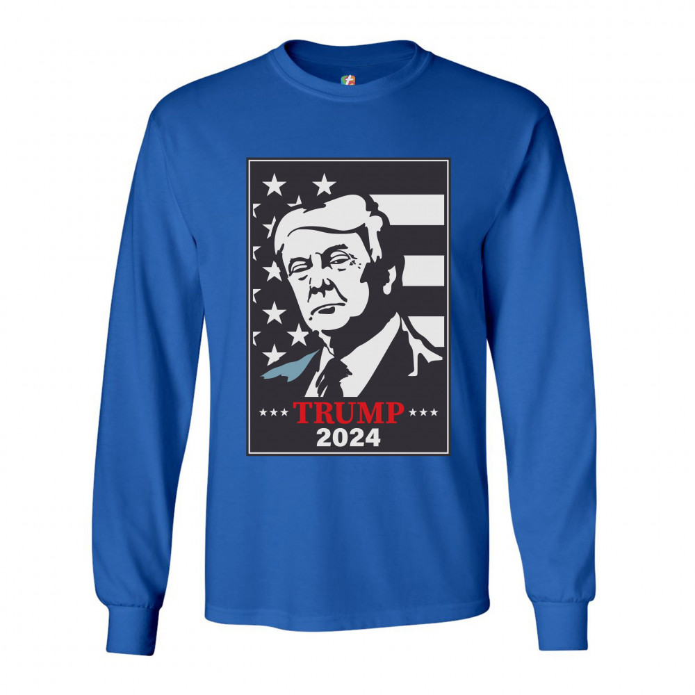 TRUMP 2024 long sleeve t-shirt keep america great re-elect donald trump royal blue