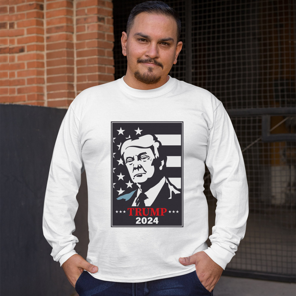 TRUMP 2024 long sleeve t-shirt keep america great re-elect donald trump white