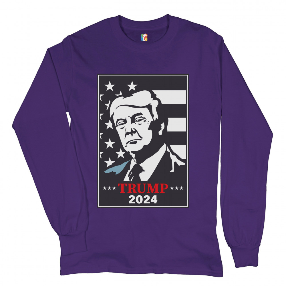 TRUMP 2024 long sleeve t-shirt keep america great re-elect donald trump purple