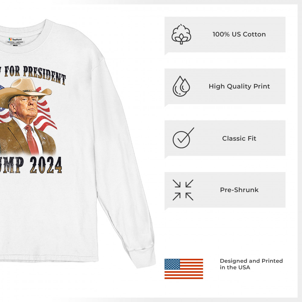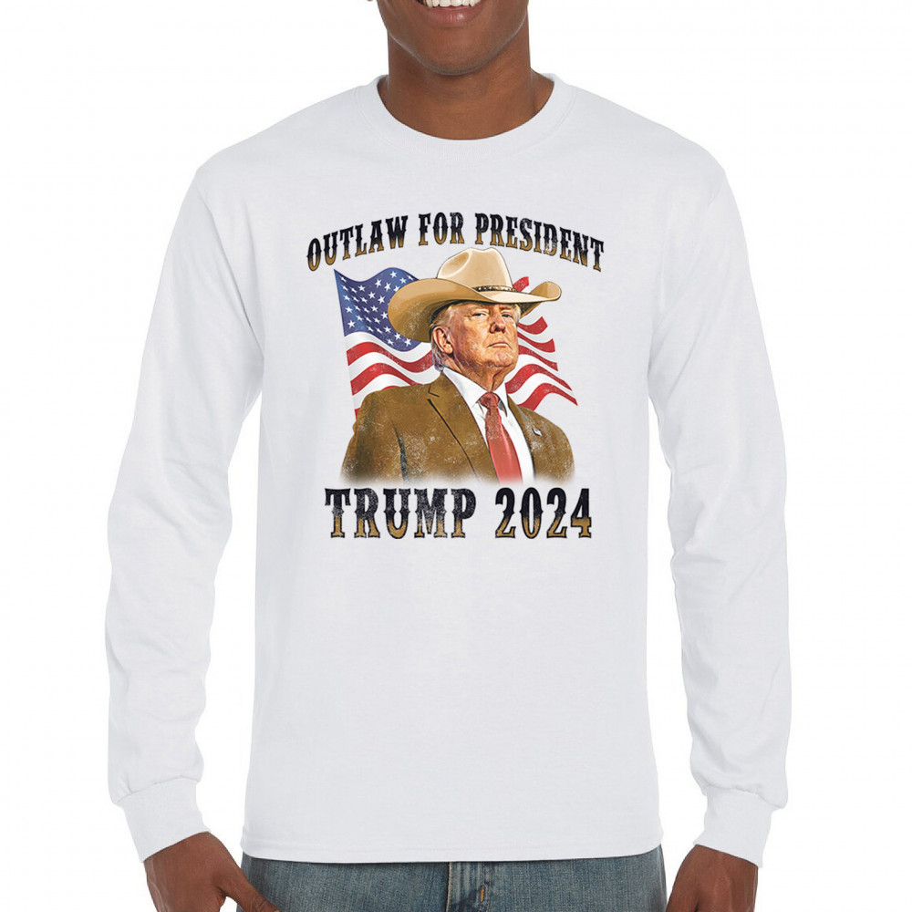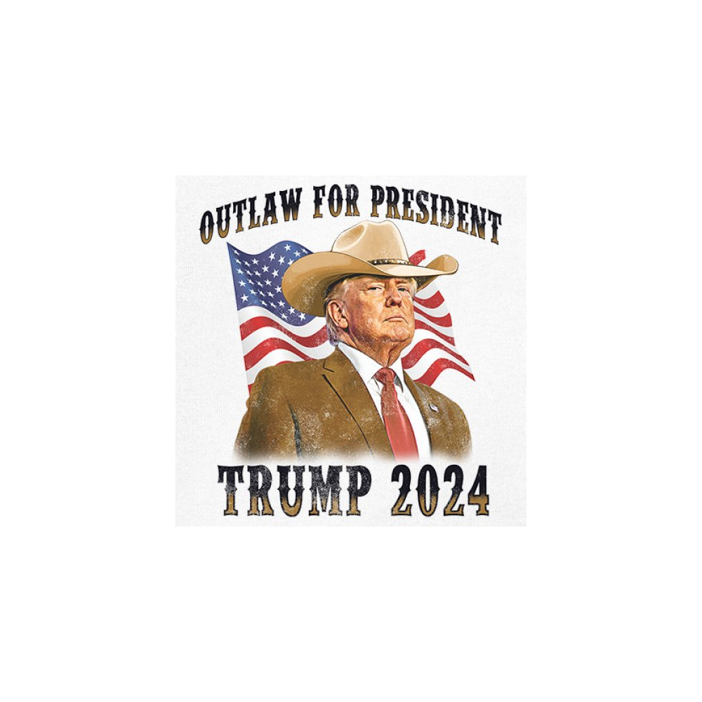 Support Trump with our "Outlaw for President" design. Featuring Trump in a cowboy hat, this piece symbolizes strength amidst political challenges. Join the fight for conservative values!