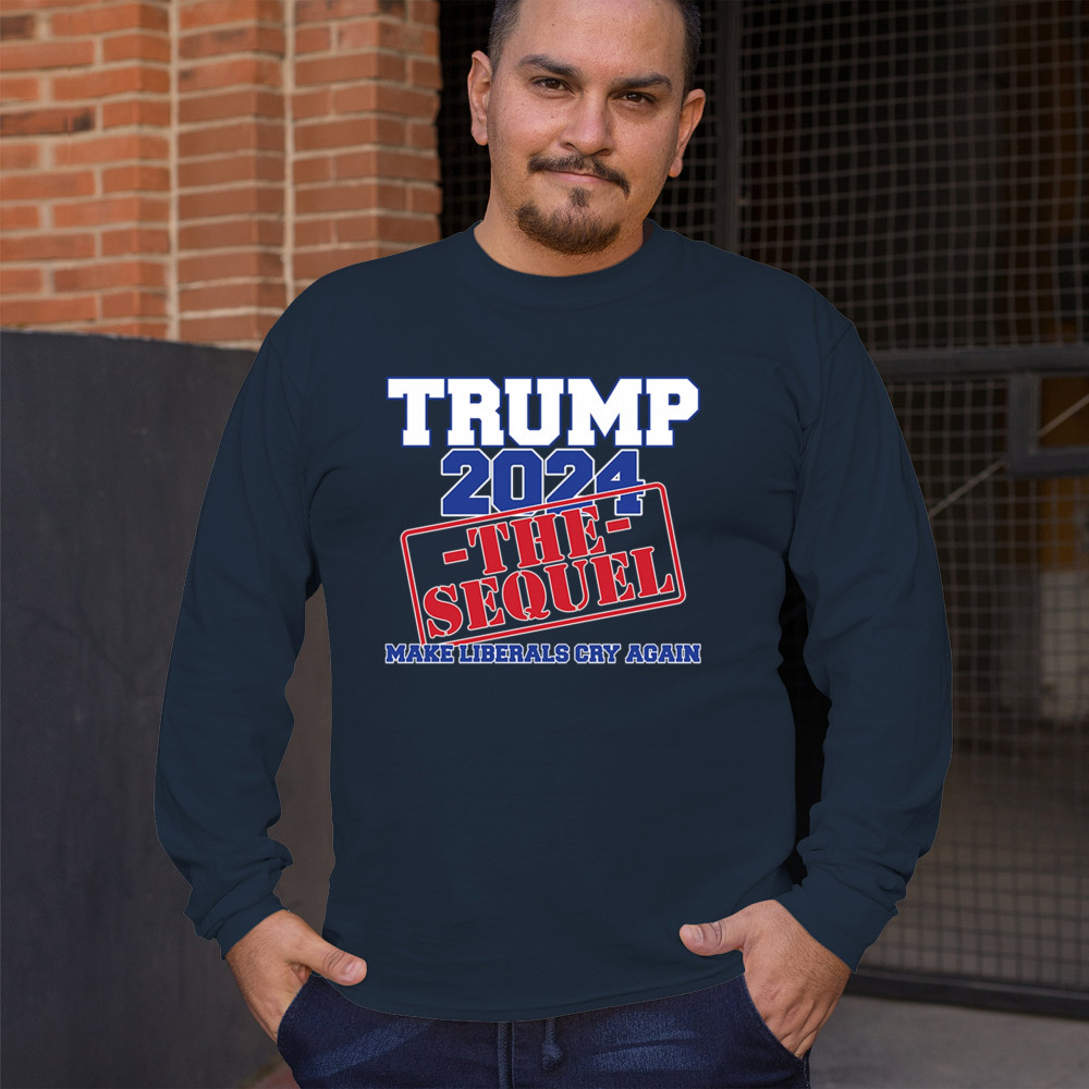 Gear up for the sequel to the America First movement with "Trump 2024 the Sequel." As a loyal Trump supporter, join the train to victory and champion conservative values. Trust in God, not government, and never surrender to those who betray our nation. Let the American flag fly high as a symbol of resilience and dedication to President Trump and the Republican cause.