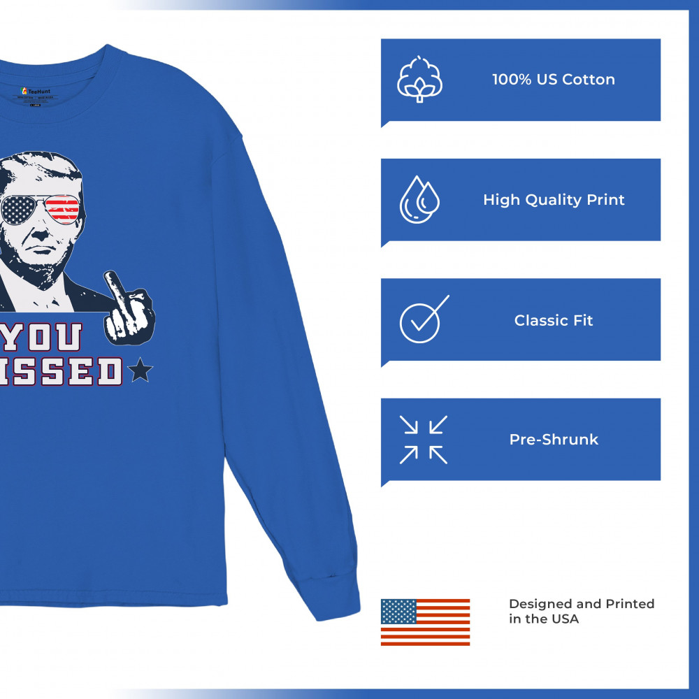 Celebrate Trump's resilience with this bold "You Missed" design. Perfect for rallies and political events. Show your unwavering support for conservative values.