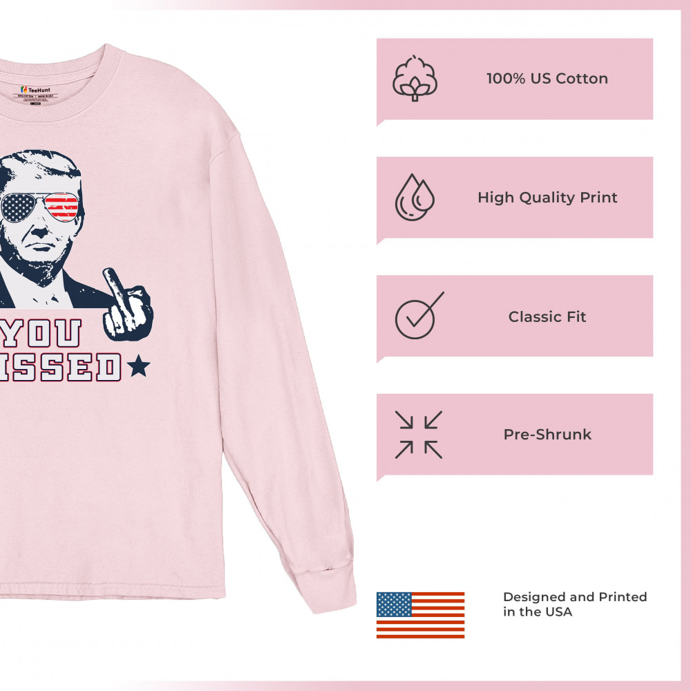 Celebrate Trump's resilience with this bold "You Missed" design. Perfect for rallies and political events. Show your unwavering support for conservative values.