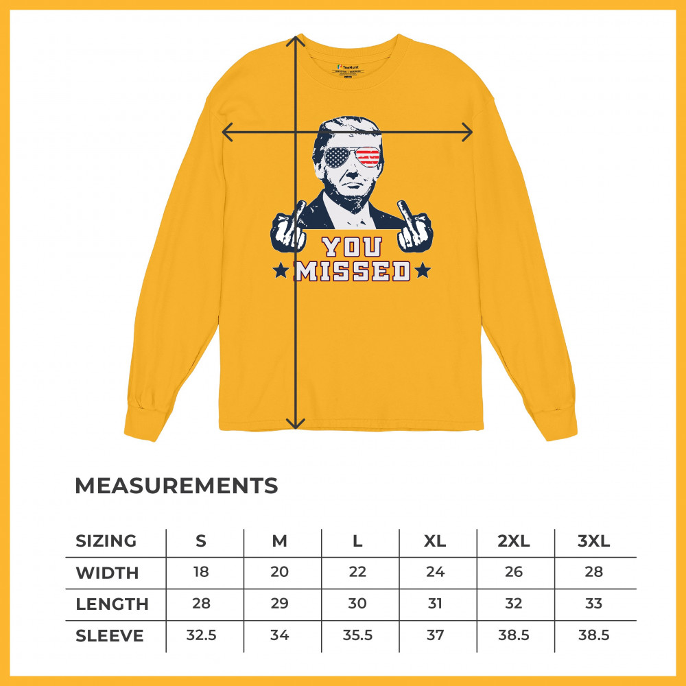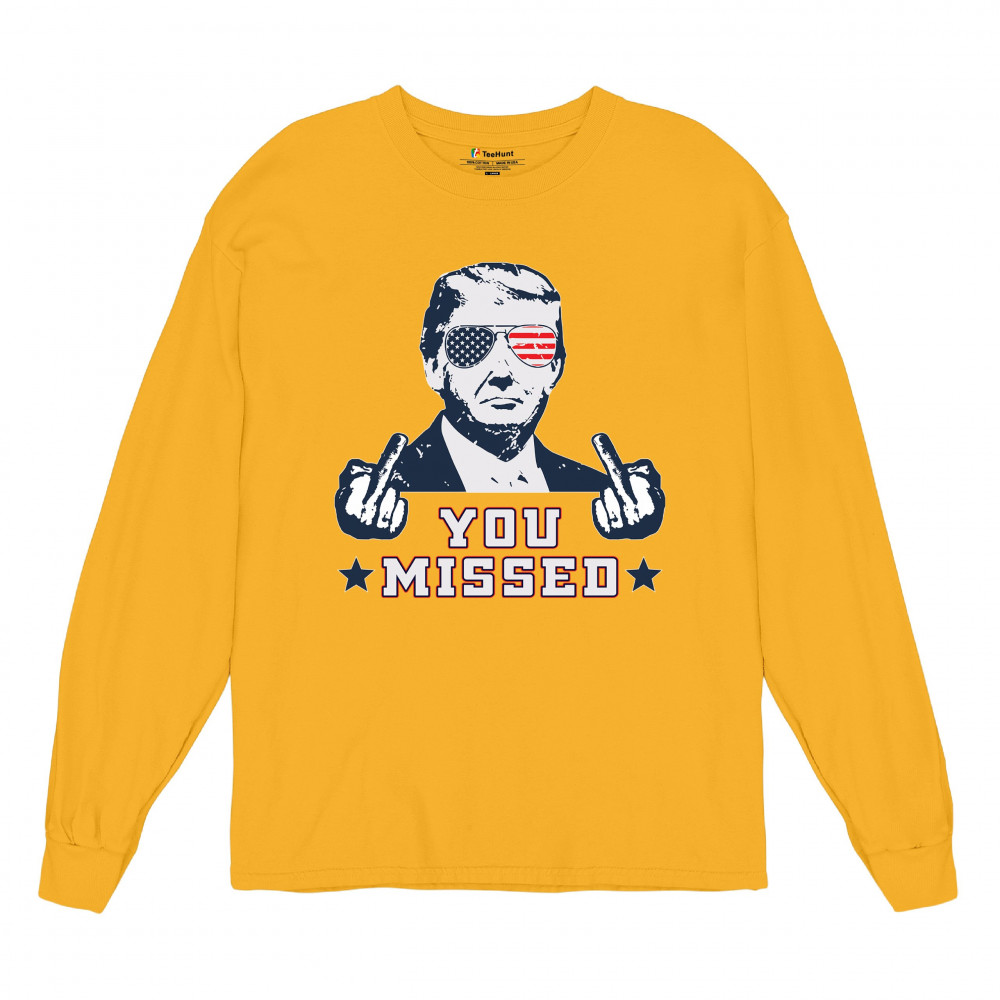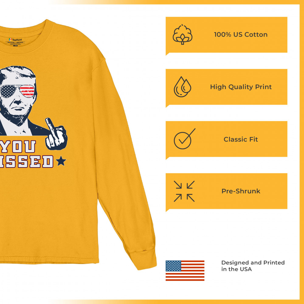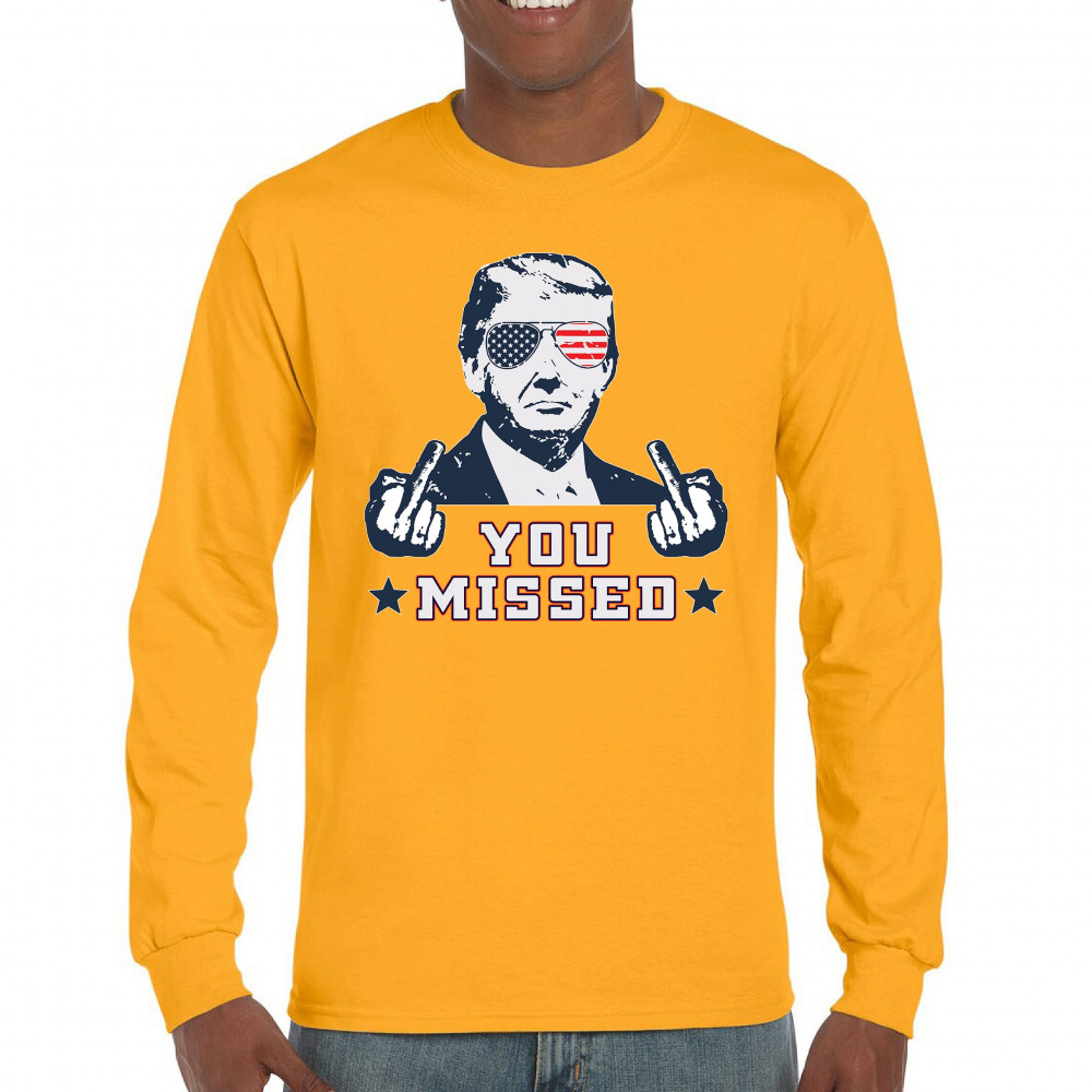 Celebrate Trump's resilience with this bold "You Missed" design. Perfect for rallies and political events. Show your unwavering support for conservative values.