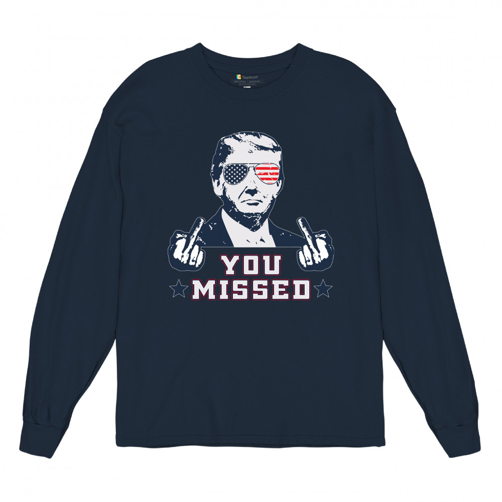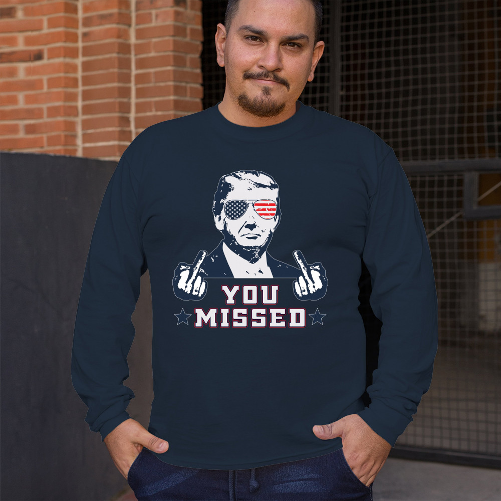 Celebrate Trump's resilience with this bold "You Missed" design. Perfect for rallies and political events. Show your unwavering support for conservative values.