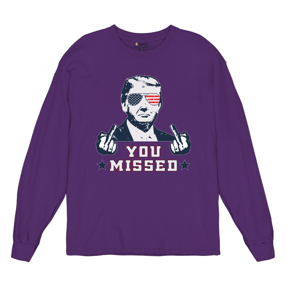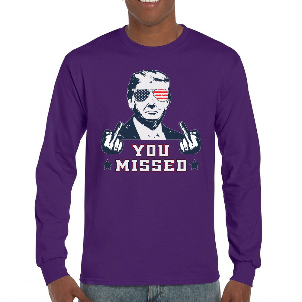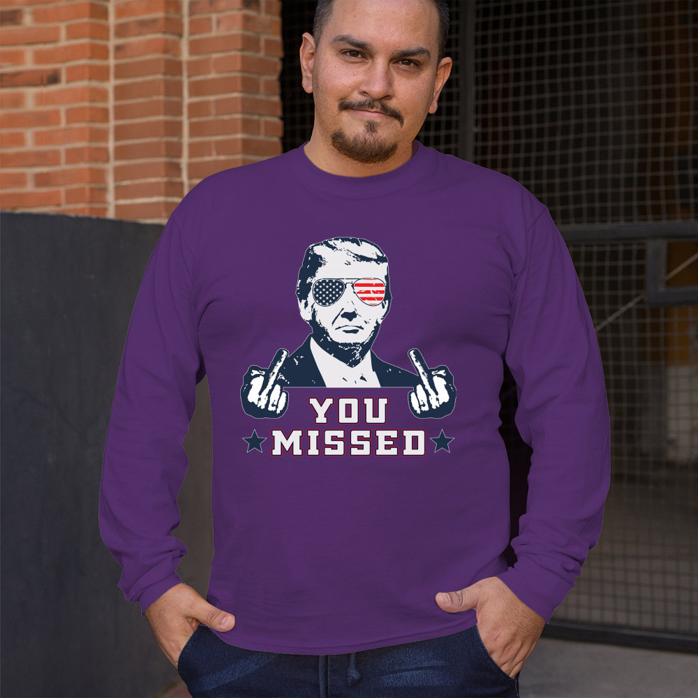 Celebrate Trump's resilience with this bold "You Missed" design. Perfect for rallies and political events. Show your unwavering support for conservative values.
