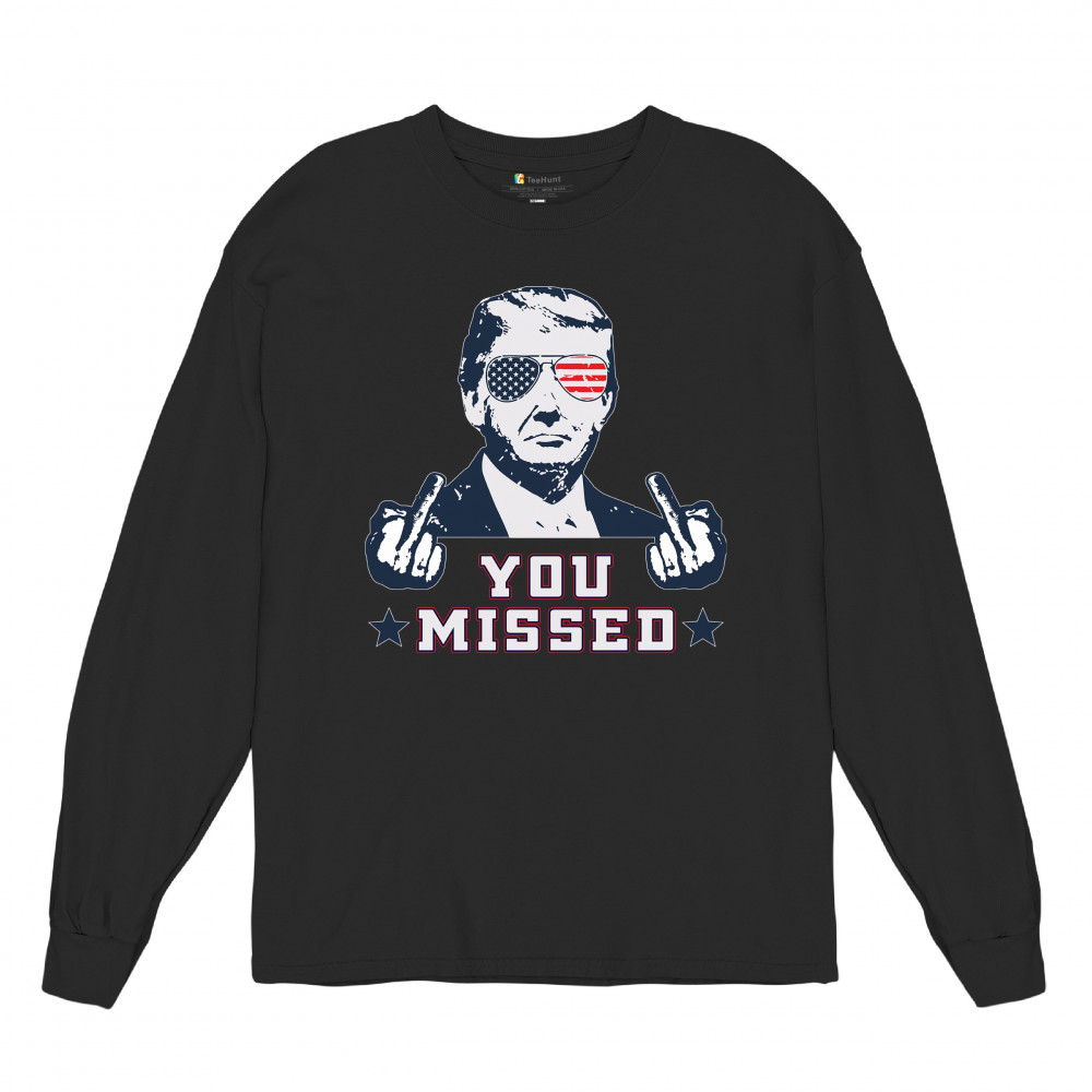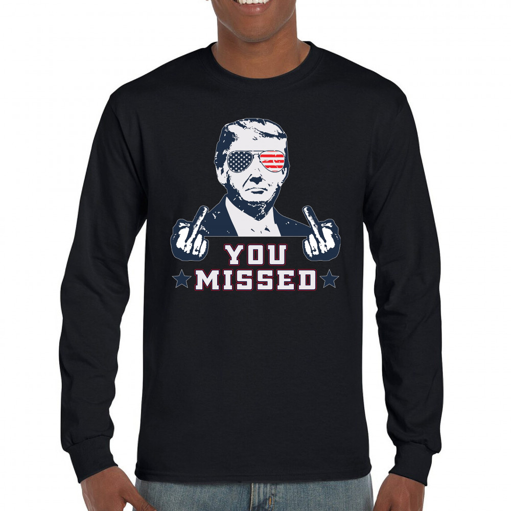 Celebrate Trump's resilience with this bold "You Missed" design. Perfect for rallies and political events. Show your unwavering support for conservative values.