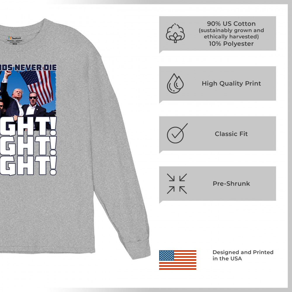 Show your support for Trump and Vance in 2024 with this bold design featuring the American flag and powerful slogans. Perfect for rallies and conservative patriots.