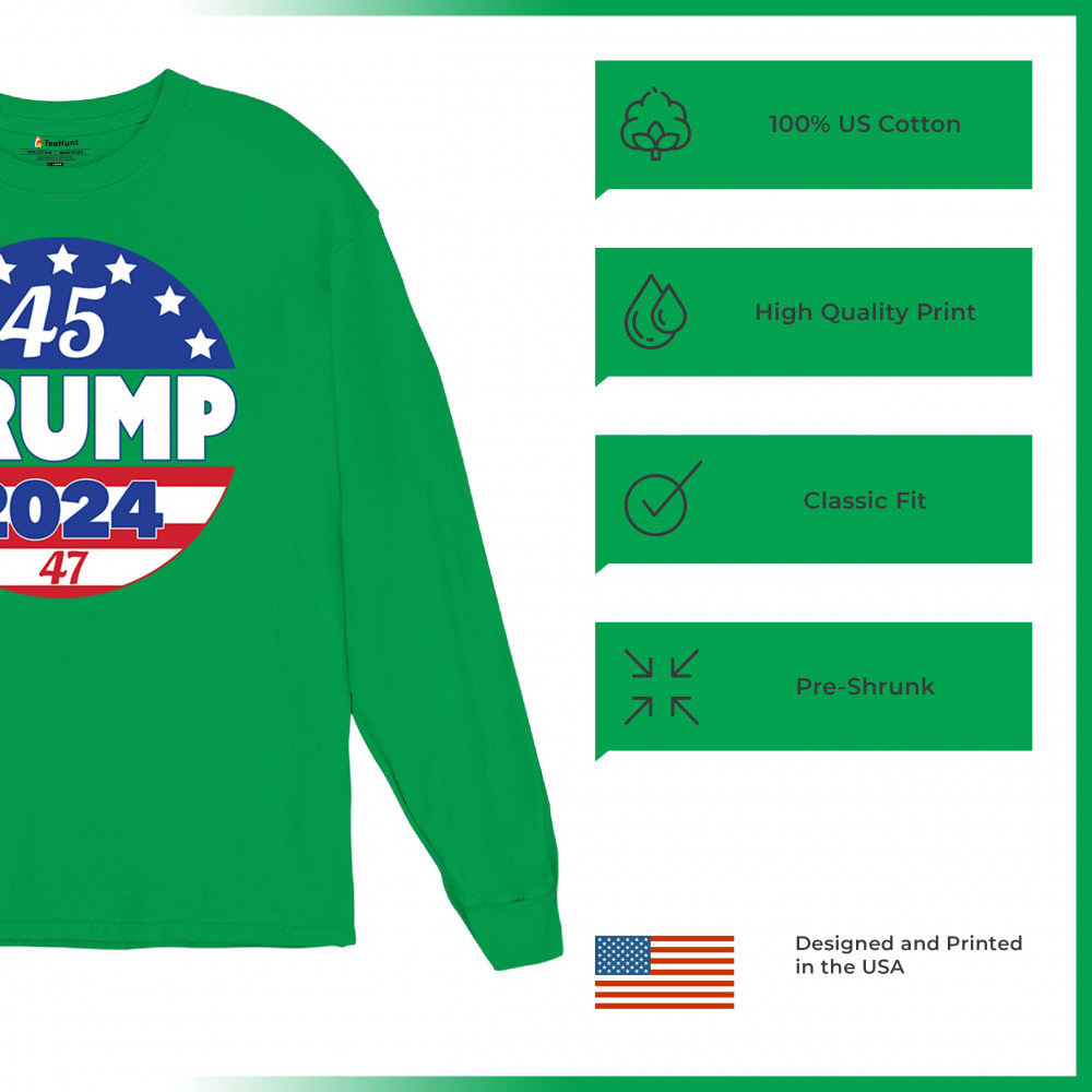 Embrace your conservative pride with this bold "45 TRUMP 2024" design. Representing America First, Republican victory, and the people’s mandate, it’s the perfect way to showcase your support for Donald J. Trump’s historic journey to the 47th presidency. Whether at rallies, political events, or casual outings, this emblem unites Trump supporters in a fight for freedom and patriotism.