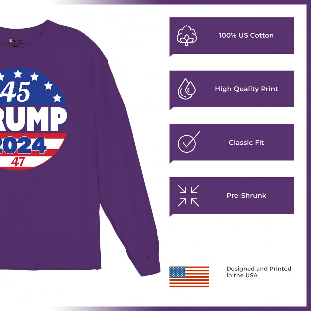 Embrace your conservative pride with this bold "45 TRUMP 2024" design. Representing America First, Republican victory, and the people’s mandate, it’s the perfect way to showcase your support for Donald J. Trump’s historic journey to the 47th presidency. Whether at rallies, political events, or casual outings, this emblem unites Trump supporters in a fight for freedom and patriotism.