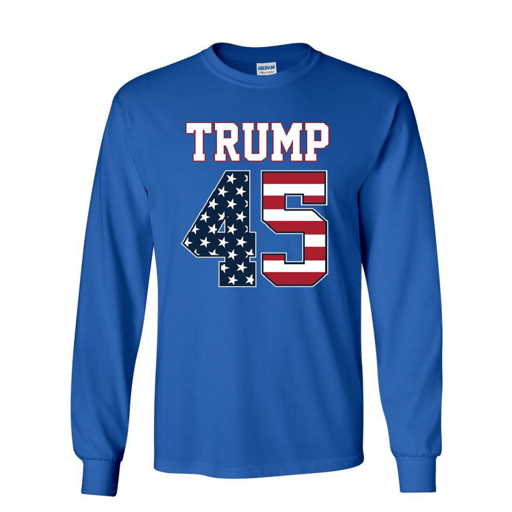 TRUMP 45 long sleeve t-shirt the 45th president political stars and stripes tee royal blue